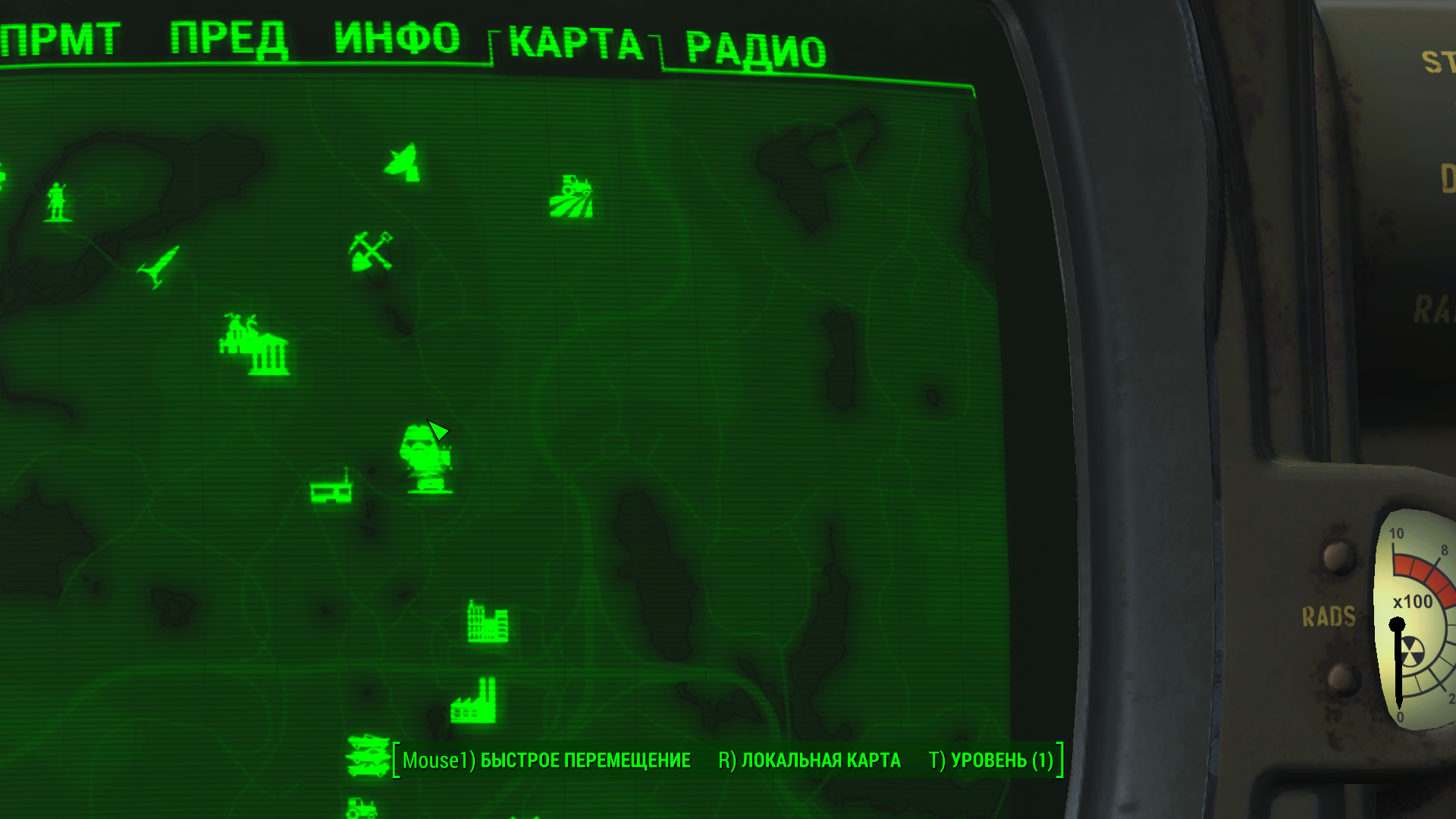 в пипбое *уехало* изображение, как исправить? теперь вижу лишь маленький кусочек локации, и абсолютно не видно меню навигации пипбоя скрин сделан при зажатой ПКМ