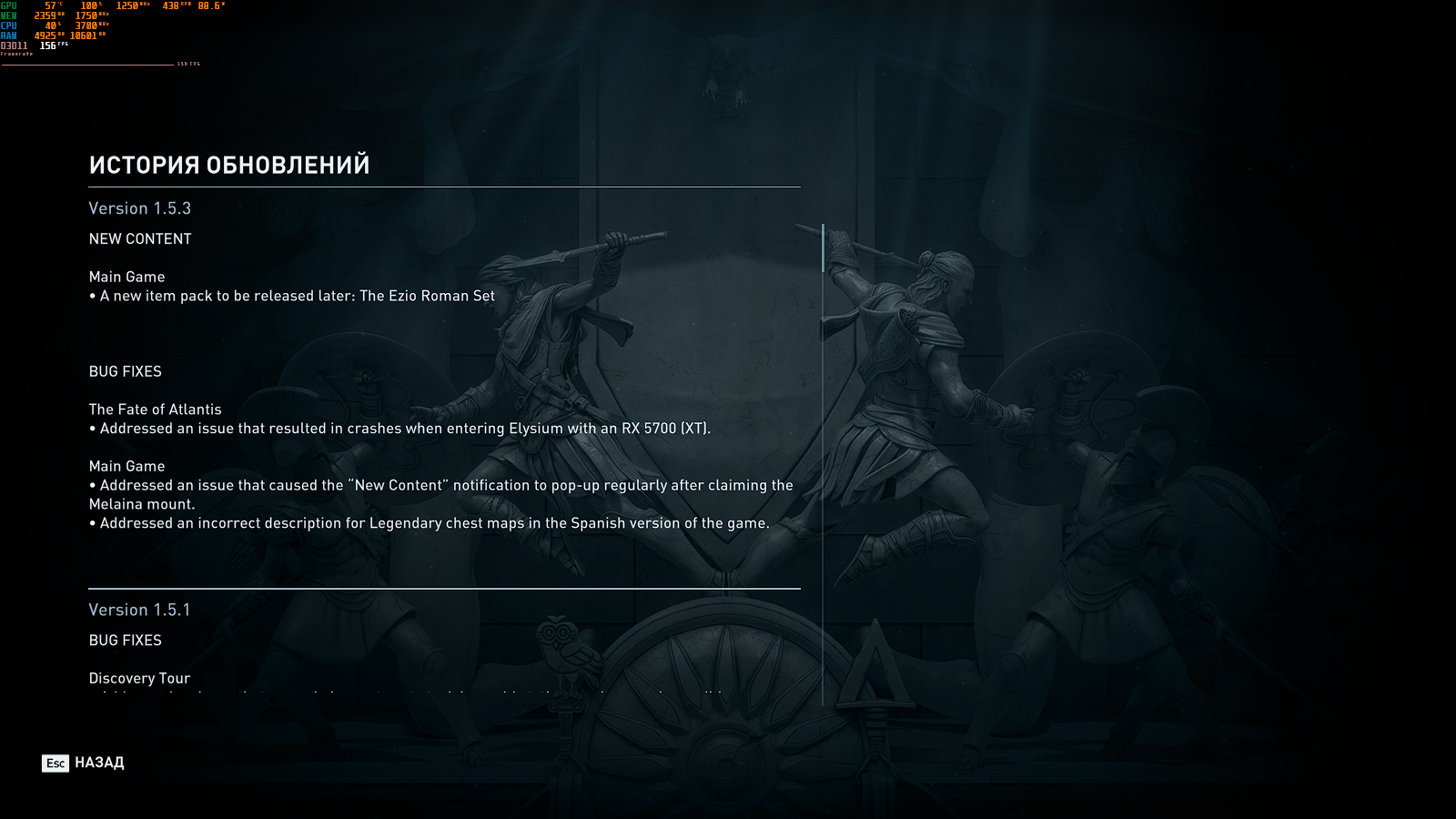 В апдейте изменены все 3 карты из DLC с Атлантидой. Явно не все исправления перечислены. Конкретно новый костюм (Эцио) весит 50 метров всего. Разблокируется через какой-то неанонсированный эвент, но обещают что бесплатно и доступно всем.