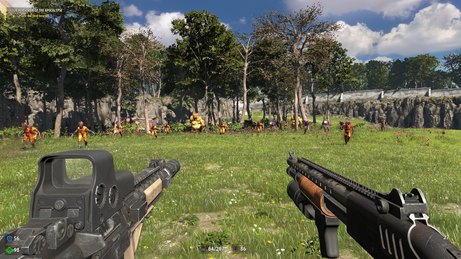 Вопрос: Будут в игре какие-нибудь новые механики? Ответ: Да. В игре будет полуоткрытый игровой мир. Некоторые карты будут генерироваться размером 128 x 128 км, вы даже можете доехать до конца карты, но не никакой необходимости объезжать всю карту. В игре также будут и линейные уровни, не беспокойтесь. Добавлены побочные задания и прокачка оружия. За прохождение побочных заданий вы можете получать различные плюшки, которые помогут прокачать оружие. Оружия, к слову, можно будет носить в двух руках одновременно, как в VR-версиях.
