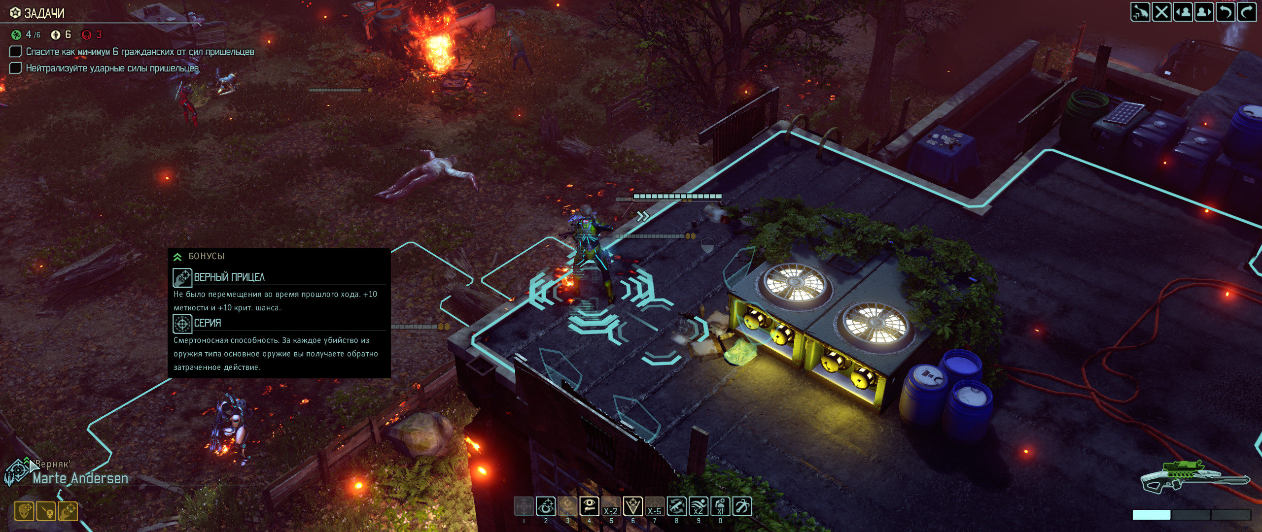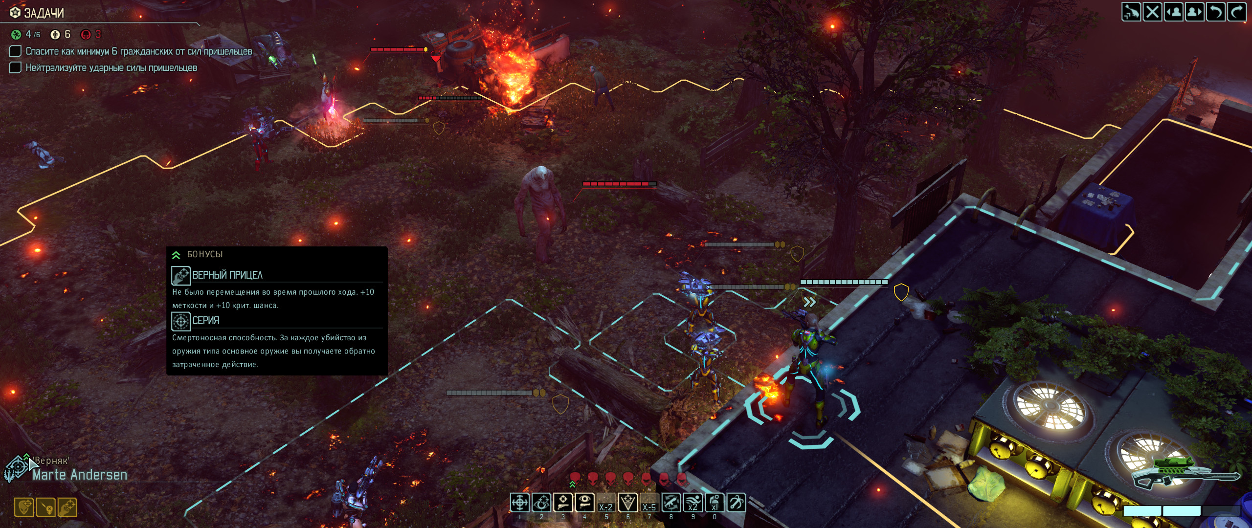 jackisdead Свободная перезарядка эффект от бонуса "серия" не сбрасывает! Т.е. я стреляю серию из 3-х, перезарядка, продолжение серии, перезарядка и, если враги есть, продолжение серии. А ПОТОМ ЛЁГКИЙ КУРОК И 10-Й ФРАГ! Теоретически. Встать так, чтобы накрыть 10-х сложно. Слишком много укрытий и заслоняющих предметов. Но. Вариант А. 1) Гренадёр с арт. залпом решает множество проблем с укрытиями. 2) Спецы и рейджеры в боевой броне с конденсаторами и ракетами бьют по площади и тем же укрытиям. 3) Обстрелам 1 и 2 подвергаются все, кроме продвинутых солдат с 8хп и без брони - убиваются снайпером с плазмой 100%. Т.о. после артподготовки снайпер забирает всех видимых. При числе врагов в миссиях 9-11 это значит ВООБЩЕ ВСЕХ.