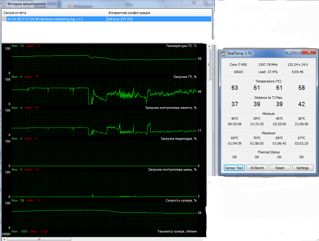 Добавлено спустя 3 минуты 28 секунд: И ещё - при загруженности видеокарты на 75% у вас температура 72 градуса достигает - что то тут не правильно - Сколько же градусов будет на 100% загрузке..Я бы озаботился нормальным охладом карточки..
