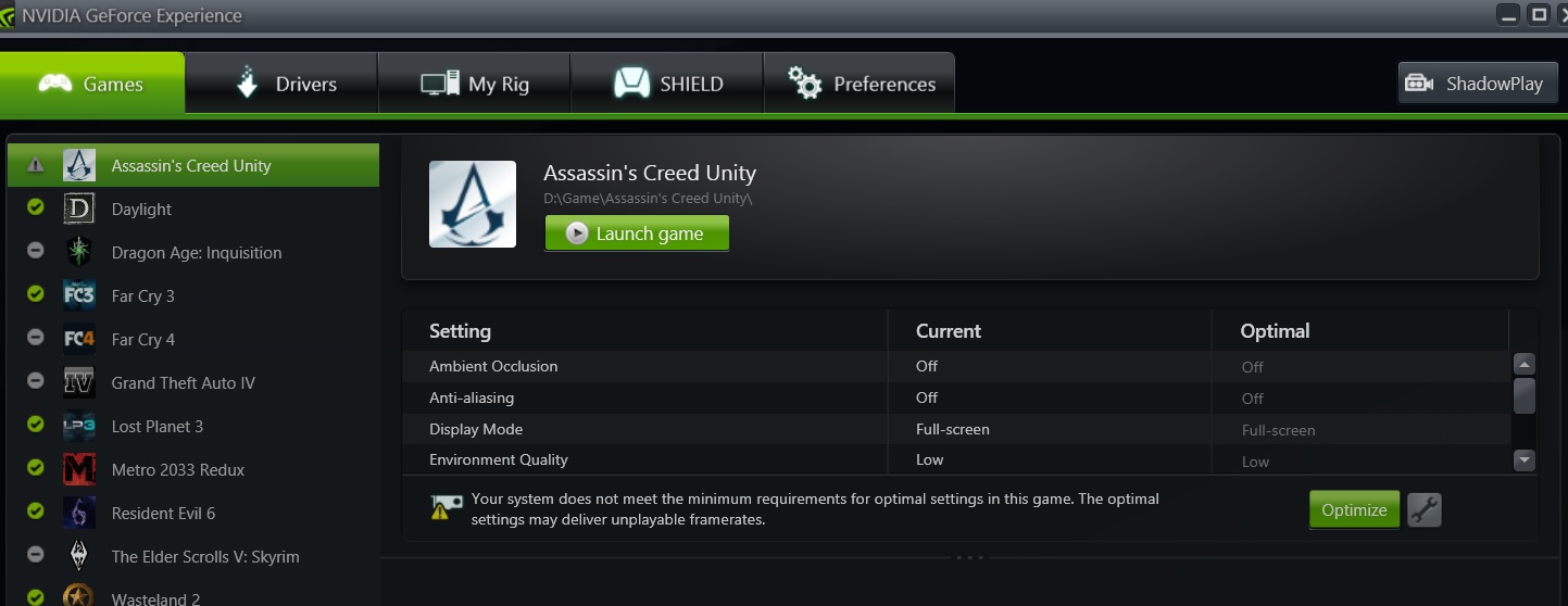ДРУЗЬЯ! я в шоке. Скачал игру 30+ гб. установил. запустил. ставлю любые настройки качества и имею лаги!!! даже все в минимум.. что это за жесть?? версия игры 1.4.0 слай включен. во вложении скрин жифорс экспириенс где не двусмысленно написано, что с моей системой игру лучше не запускать это на самом деле так или игра лечится и нормально бегает??