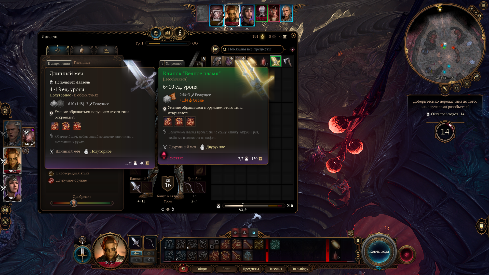 Есть, это заклинание 1-го уровня, оно отсутствует в книге заклинаний, поэтому сначала надо навести порядок в заклинаниях, а затем отбирать клинок. Советую из Шедоухарт сразу сделать лечилку, она и по сюжету ею была. "Вечное пламя" поднимать Лаэзель, и им же отоварить сначала командира Жалка, а затем Иллитида. Потом добежать до Передатчика, на всё про всё 15 ходов должно хватить.