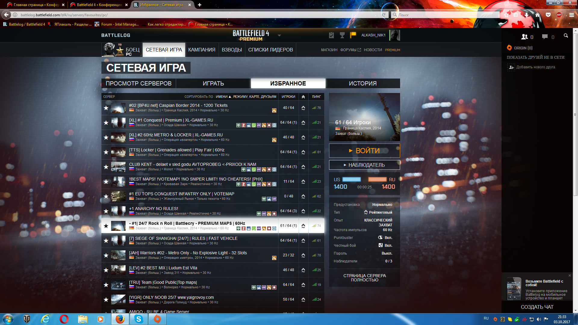 Как добавить сервер? Играл на прикольном серваке, но не добавил его в избранное, как его найти? Слева от название сервера есть звезда, нужно нажать на нее. В BF4 доступна подробная история игр - на каком сервере играли с кем, какой счет...
