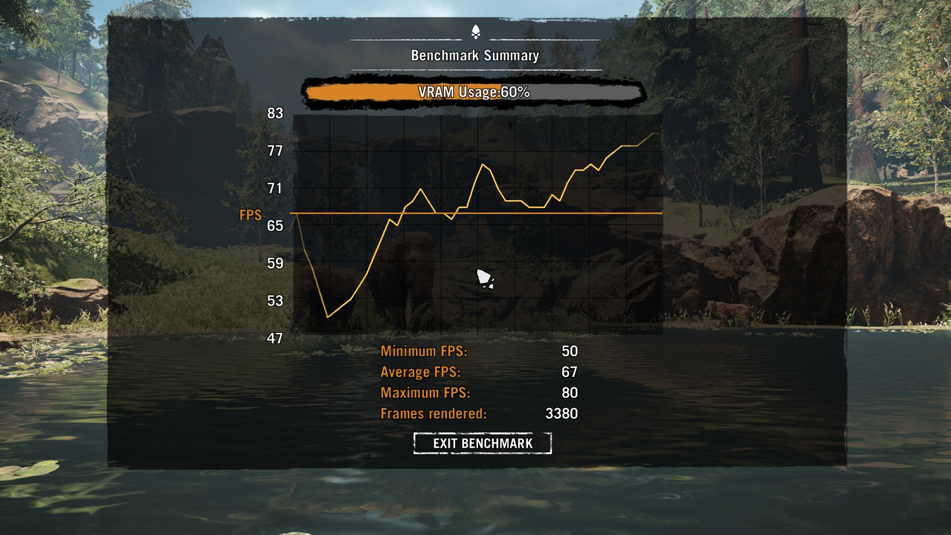 кароч бенчмарк этот в двух местах проседает на долю секунды. 90% бенча идет свыше 60фпс))) но и владелец 980ти писал что в бенче падает ниже 60 на ультрах
