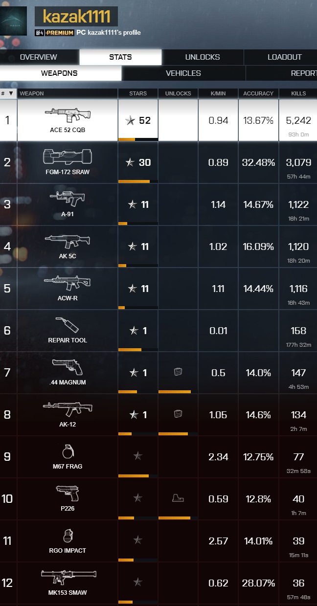 Для каждого класса бойца есть свой вид оружия (некоторые виды доступны другим классам), чтобы прокачать\открыть его нужно играть за этот класс и получать очки. Некоторое оружие открывается при прохождении Кампании, но его нужно отыскать (где найти оружие будет ниже в гайдах). Некоторое оружие можно открыть только выполнив определенное задание, но для выполнения многих заданий нужно, чтобы у вас были куплены дополнения или Premium статус. Описание требований для открытия оружия можно посмотреть в БОЕЦ -> Открываемое -> Оружие.