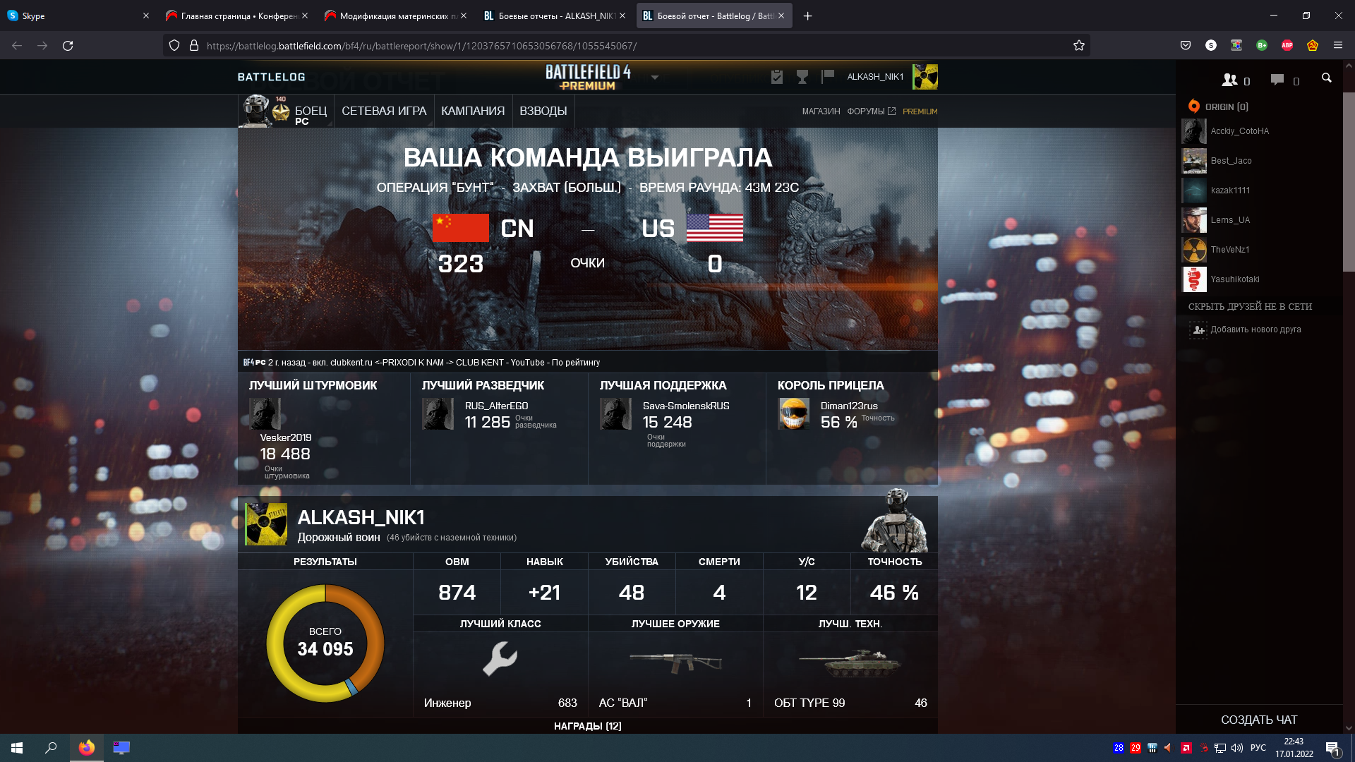 Часто за высокий к/д кикают не потому что считают читером. В бф4 продвигаются те серверы, что больше добавляются в избранное. А если ты там со счетом 40/0 поджигаешь жопы и люди с сервера ливают, то админу лучше оставить на сервере 20 сгоревших жоп, но выкинуть тебя. Потом будет тупо проще стартовать сервак.