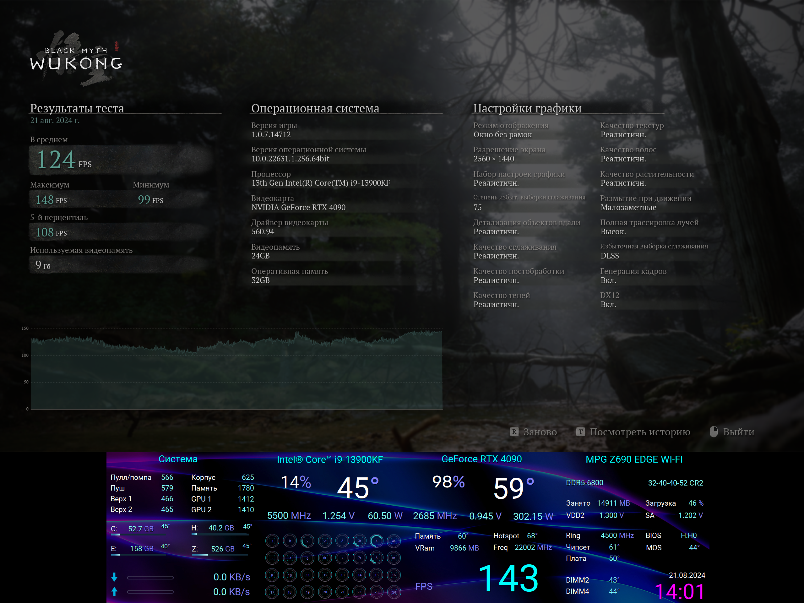 В принципе нормально. Карта в андервольте, можно было бы чуть поднять фпс разгоном, но я этого делать не буду)) Хотелось бы конечно хотя бы 180фпс, но и так сойдёт. Это не 80фпс с лучами как в Элдене. Порадовало, что в результатах бенча вся нужная инфа по настройкам на одном экране, и результаты от разных проходов практически не меняются. Похоже новый стандарт бенча производительности завезли Пойду поиграю что ли