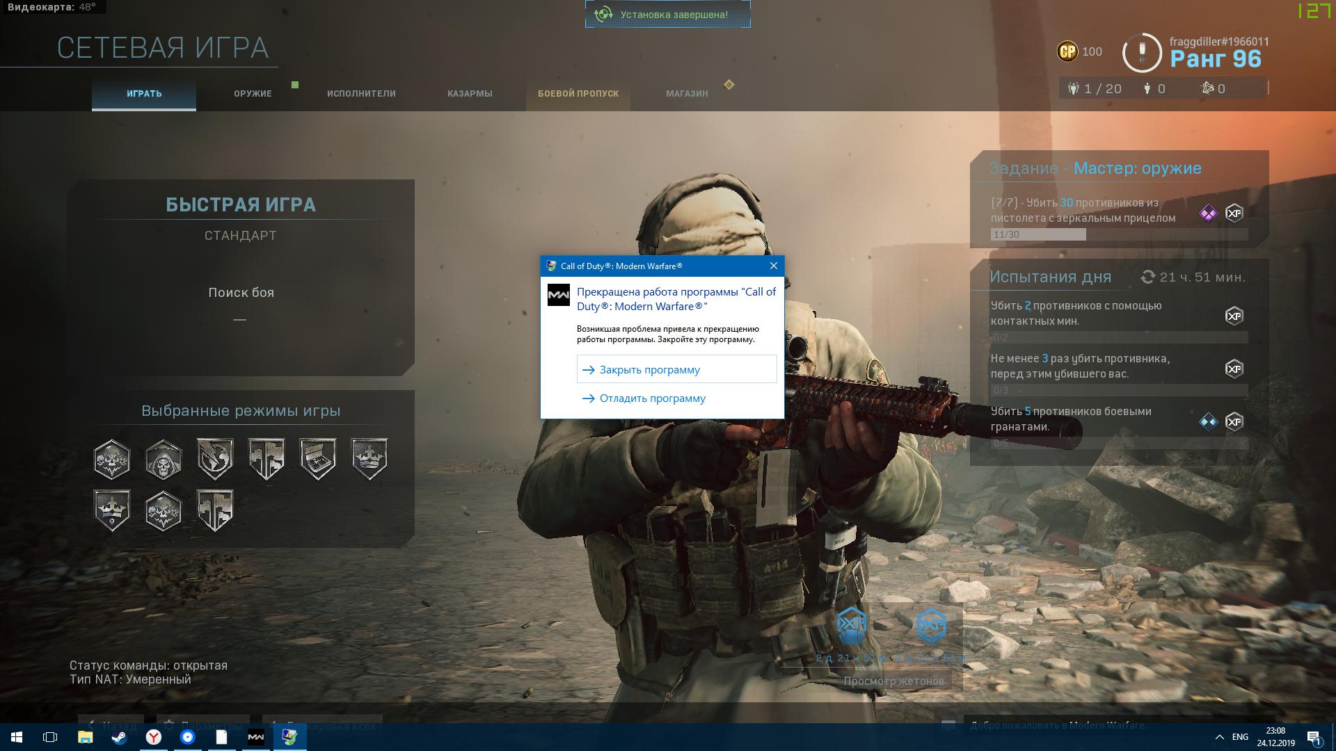 ОШИБКА 6065. Проблема этой ошибки в том, что игра почему-то не распознает новые драйвера от AMD и NVIDIА. Вы, конечно, можете, как я уже писал у себя в паблике, обновить DirectX, сделать сканирование игры на битые файлы и попробовать сыграть на минимальных настройках с ограничением 300 кадров, но это помогает не всем. Попробуйте откатить свои драйвера видеокарты к более старой версии. Проблема должна решиться. Что бы удалить полностью графические драйвера используйте DDU ( https://www.guru3d.com/files-details/display-driver-u.. ). ОШИБКА 6071. Это еще одна распространенная ошибка игроков. Одна из причин этой ошибки в том, что система игры не хочет воспринимать вашу разогнанную карту. Разгоняли ее вы, или кто-то в магазине вместо вас — настоятельно рекомендую зайти в настройки видеокарты и вернуть ей дефолтную, тактовую частоту. Проблема тоже должна решиться. ОШИБКА 6068. Это ошибка непосредственно DirectX. . Можно еще попробовать заблокировать COD MW на 30 фпс. Чтобы это сделать, зайдите в Панель Управления > Nvidia / AMD > управление 3D настройками > настройки программы. Дальше выберете игру из списка и установите вертикальную синхронизацию *AdaptiveHalf Refresh Rate*. Примените изменения, затем запустите игру и отключите вертикальную синхронизацию в игре и вуаля. Игра будет заблокирована на 30 кадров в секунду. Это позволит уменьшить использование графического процесса, что приведет к стабильной производительности. Ещё с ошибкой DirectX может помочь установка видеодрайвера Studio Driver (работает для карта Nvidia). СБОЙ ПРИ ЗАПУСКЕ. А вот и самое вкусное, когда у вас игра либо не запускается, либо крашится без какой-либо ошибки. Одной из причин таких приколов может быть ваш антивирус или Защитник Windows, который обнаруживает exe-файл и кидает ему бан, как трояну. ОТКЛЮЧИТЕ АНТИВИРУС или сделайте исключения для COD MW в самом антивирусе. Если данный способ не работает, то виновником торжества может быть программное обеспечение для мониторинга системы, как например MSI Afterburner или GeFrorce Experience. Отключите их, игра должна работать нормально. НООО, есть небольшая поправочка. Если вы отключили MSI Afterburner — это не решит проблему, нужно сделать вот что: Откройте сервер статистики RicaTuner (RTSS) > Нажмите кнопку «добавить» и перейдите в папку игры > Добавьте игру COD MW в разделе «свойства профиля приложения» > Установите для игрового приложения уровень обнаружения 0 и можете закрывать RivaTuner. 100 процентная загрузка процессора. Чтобы это исправить, перейдите в раздел *C:\User\ВашеИмяПК\документы\CODMW\players*. Идем дальше. Здесь вам нужно отредактировать два файла, а именно config.cfg и config-C7XXXXXX.cfg. Откройте эти файлы и найдите *setcl 895653276*. Теперь убедитесь, что разрешение перед этой стройкой совпадает с разрешением экрана вашего монитора. Если установлено высокое разрешение, измените его на собственное разрешение монитора. Сохраните его и запустите игру и 100 процентная загрузка ЦП будет решена. НОООО, если установленное разрешение совпадает с вашим собственным разрешением, то вы можете попробовать заблокировать игру на 30 кадров в секунду, как мы делали это в 3 пункте. З.Ы. такого рода исправление помогает так же ошибках: 6071, cбой при загрузке, сбой при игре и пр. Ошибка 6036 и 6146. Ошибка лечится очень просто. Перейти в файлы игры, найти *bink2w64* и удалить его. Потом, перейдите в папку *Main* и удалите *fileSysCheck.cfg*. Потом откройте Battle.Net и нажмите на игре в свойствах *сканирован