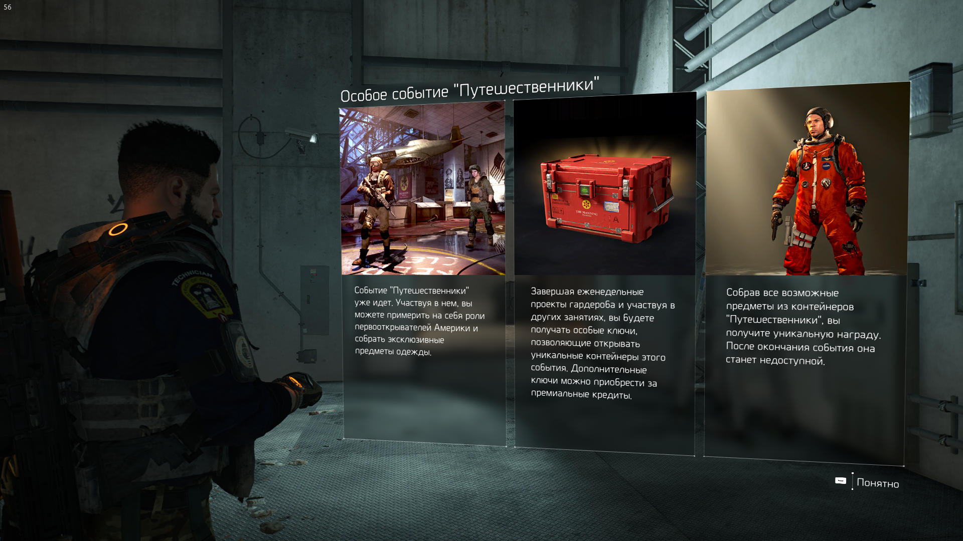 Если на этом этапе у вас еще останутся ключи, успейте их использовать, потому что после его окончания эксклюзивная форма станет недоступной! Чтобы собрать полную коллекцию предметов события «Путешественники», вы можете тратить имеющиеся у вас ключи и покупать новые. Учтите, что предметы события «Путешественники» нельзя будет найти в обычных контейнерах с одеждой по завершении события. Они появятся в них позже.