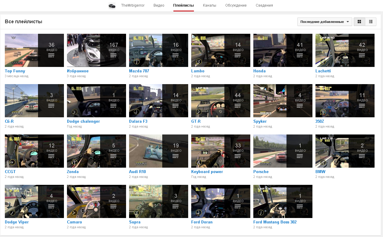 да, этот человек настоящий раб грида 1. а как ещё говорить о человеке, у которого в плейлисты на ютубе подразделены даже не на классы машин, а на сами тачки, так как он заснял рекордный круг, который, как он сознавался "дрочит" пол дня, чуть ли не на каждой тачки на каждом треке.собственно вот его плейлист на скрине. и это только с начала 2010 года. перед этим он имел другой канал. после того, как закрыли сервера грид 1 и большая половина играющих забросило эту аркаду, он постоянно всех старожилов агитировал вернуться. да что тут говорить: вот одно из его видео. Только вот заходя в онлайн у него уже были не те результаты. ошибки сыпались одна за другой
