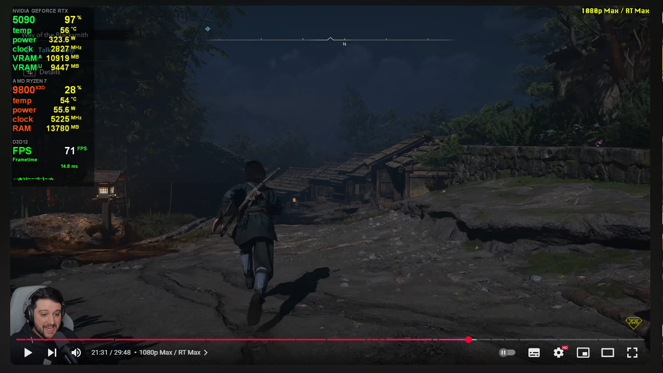 Dimkovski потенциал игры раскроется спустя много лет. Даже на rtx 5090 в 1080р 70 фпс. Выставил общий пресет на "очень высоко", глобальное освещение при трассировка лучей на "рассеивание (везде) - в среднем 55-60 фпс.