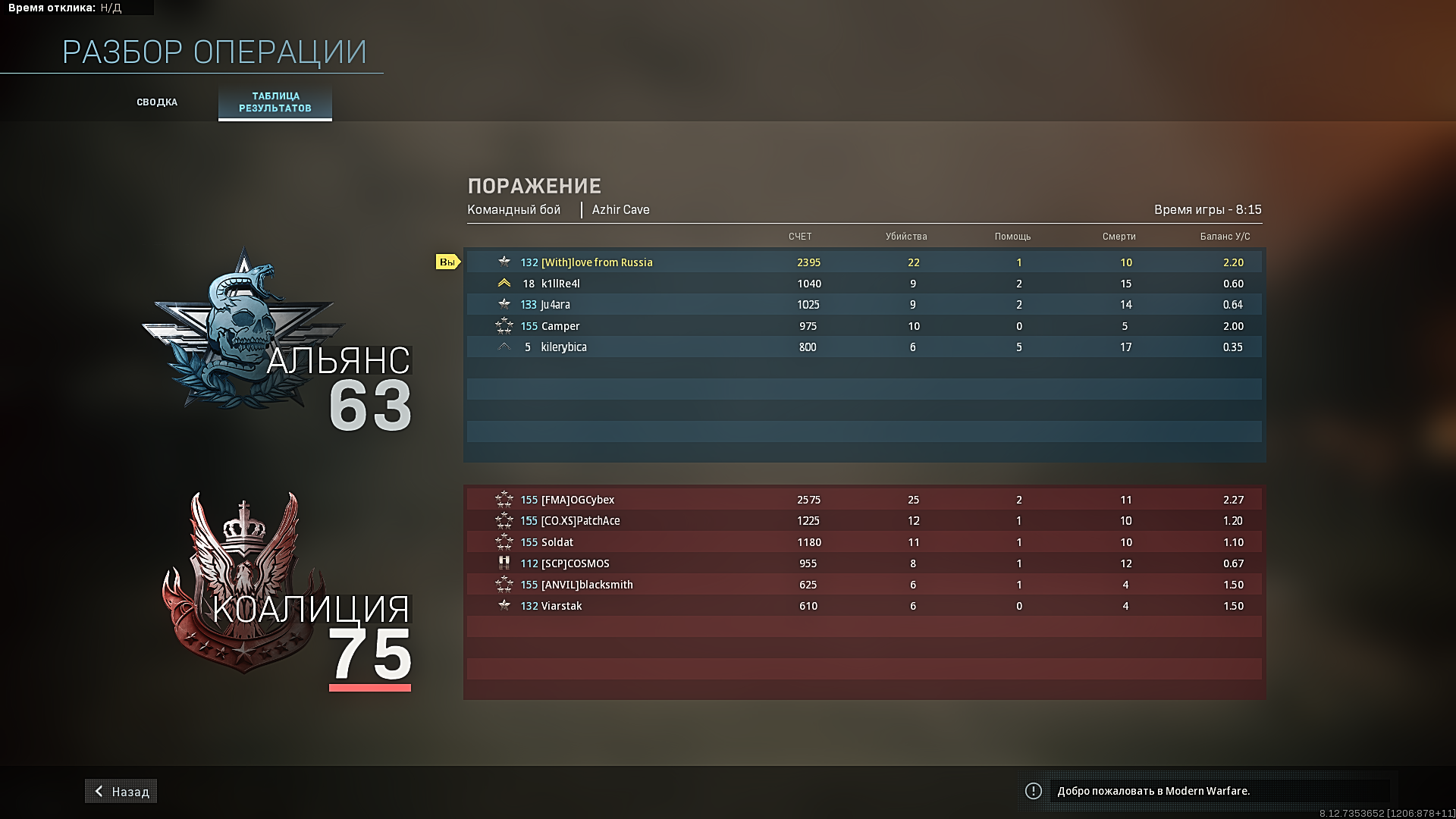 А как тебе пинг больше 100 а? И это игра закидывает на такие серваки после нескольких побед подряд.