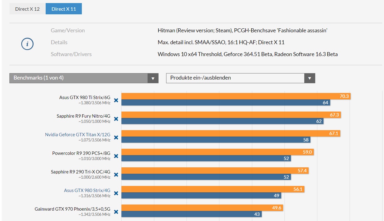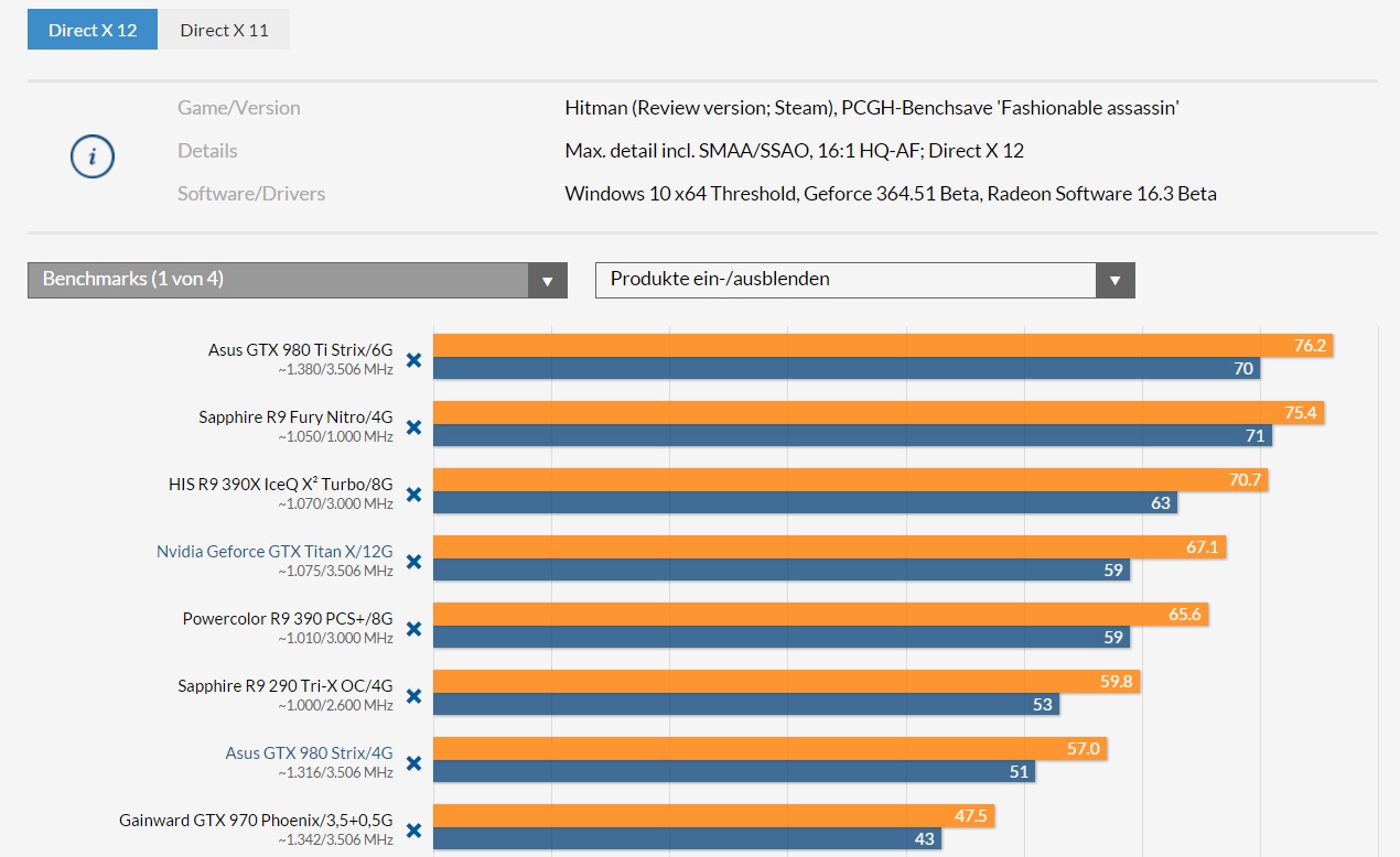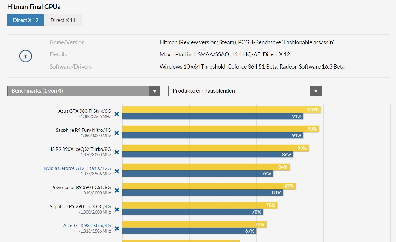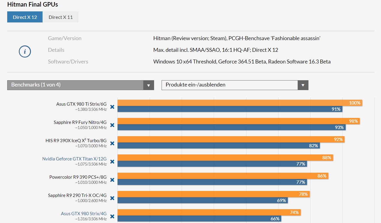 ЗЫ - легче сравнивать dx11 и dx12 отдельно. Так видно, что ничего не меняется практически, красные что в dx11, что в dx12 имеют преимущества. Но где-же эти десятки процентов профита над максвеллом, да еще и рефом? ЗЫ - пропустил, что падение производительности на максвелле. То есть на разных сайтах разные данные?
