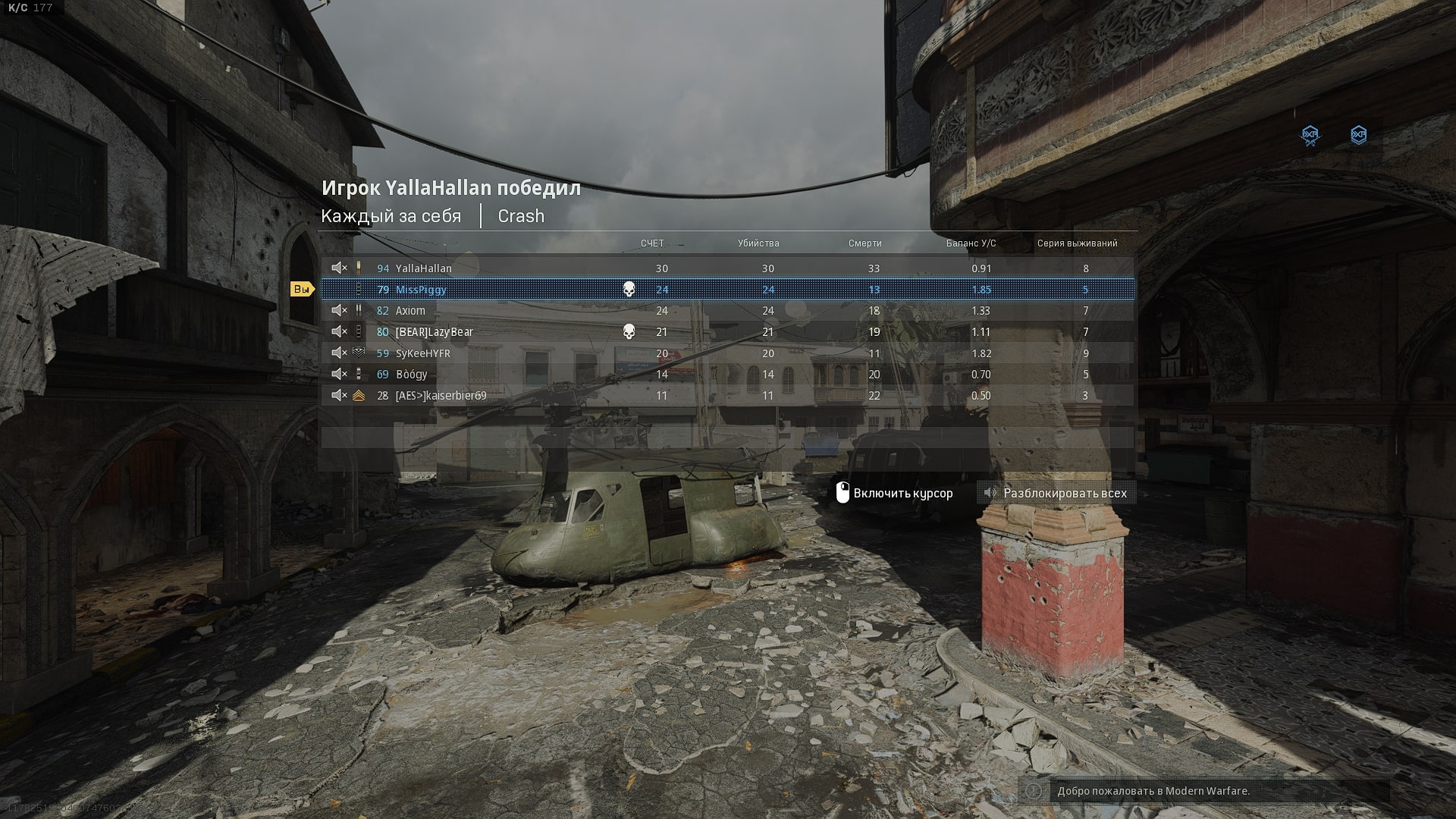 Я улыбался: атаковал тебя с улицы, стреляли друг в друга, но остались живы; ты вглубь комнаты отошёл - тогда я тебя из РПГ и достал. Но затем - когда ситуация точь-в-точь повторилась в том же самом месте - я уже ржал как конь. Вот в таких случаях РПГ и незаменим - когда соперник за укрытием. А быстро менять ствол на трубу и быстро же её перезаряжать я умею... Кстати, вот этот яллахаллан - который на твоём скрине вверху списка - по счёту можно сделать вывод: нуб нубом (дохнет на каждом шагу), но выигрывает, благодаря читу. Он у меня давно в списке помеченных как подозреваемые в читерстве.