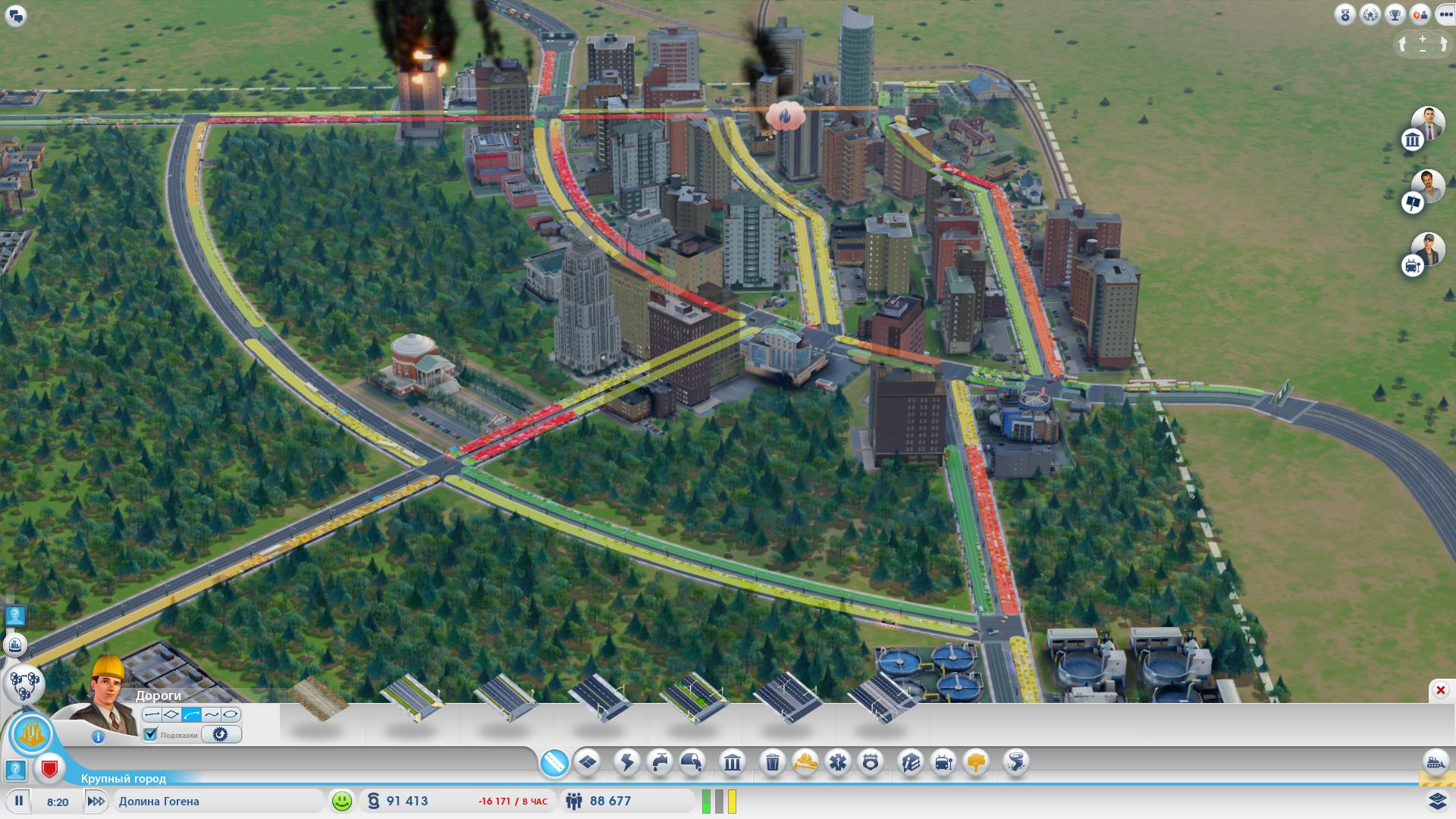 Q: Подскажите как плотность застройки поднять? A: Факторы, влияющие на плотность: службы, расстояние до магазина, продажи (количество покупателей) и состояние дорог (пробки). Сама дорога (простые, 2х и авеню дают возможность строиться высоткам, если факторы выше этому способствуют). А для каждого типа населния свои требованиям к: службам, магазинам и состонию дорог. (Сама стоимость земли регулируется парками - от $ до $$$).
