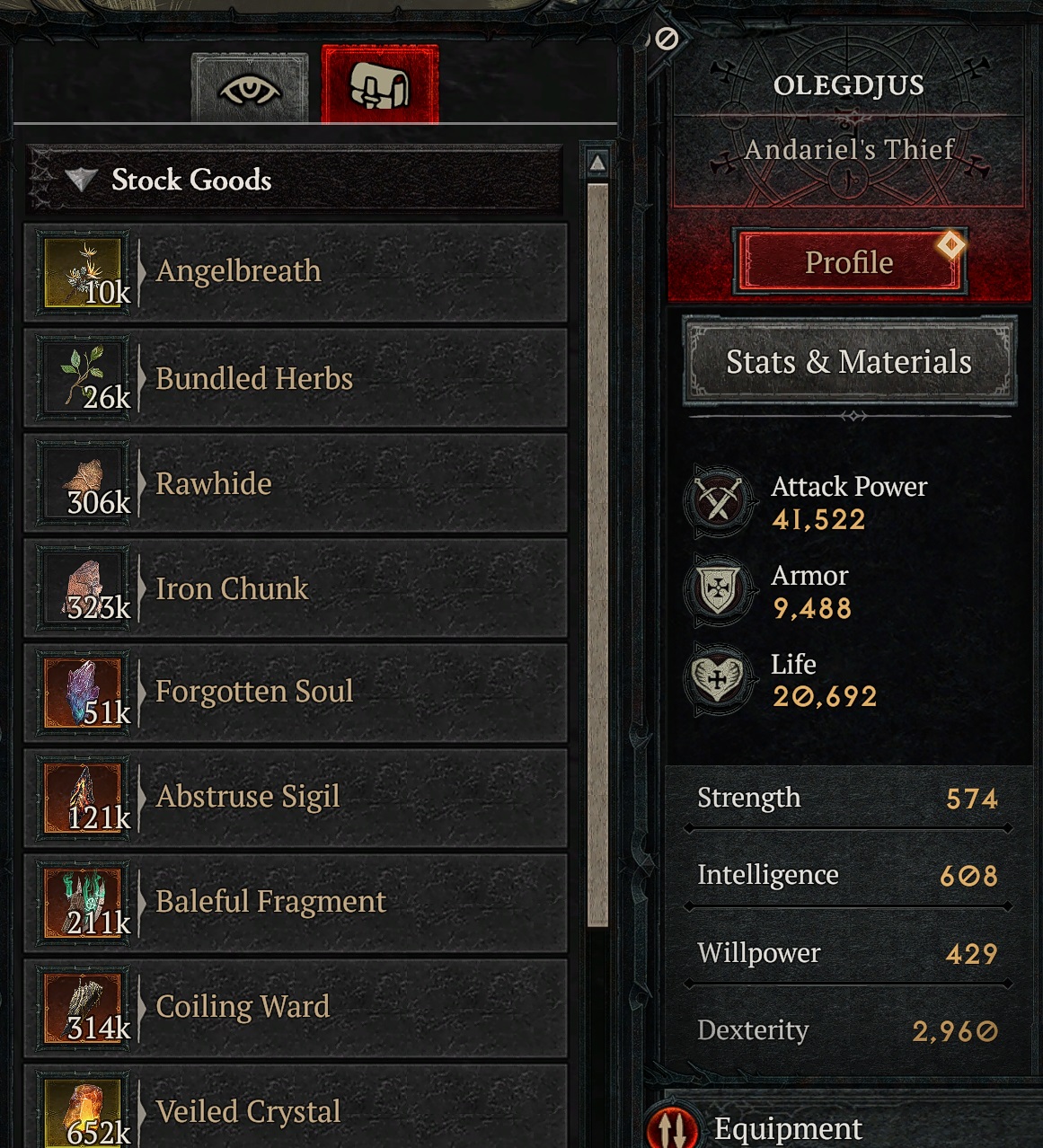 Не понимаю, к чему это только. Вычти из сегодняшнего скрина вчерашнее и получишь десятки тысяч материала Уточнил: один легион - 900 железа и 900 кожи. В чем дефицит - не понимаю