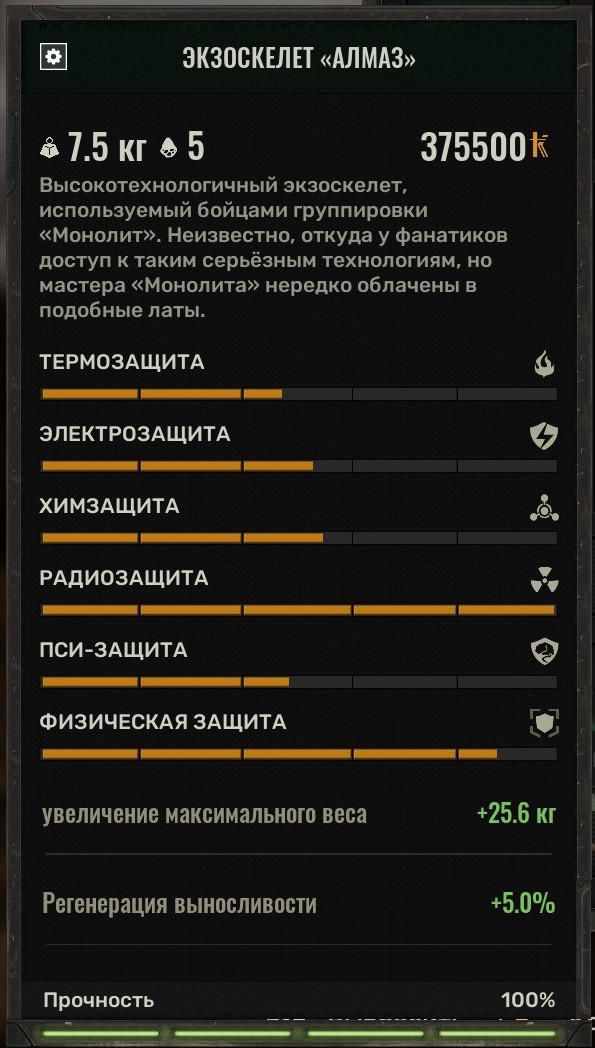А чем вас "пинзирёк" странной водицы" не устраивает? Переносимый вес, кажись +40 кг и хорошо защищает от радиации. Да, слегка покачивает при движениях, побочка, но люди бегають и довольны. В совокупности с экзоскелетом "алмаз"(после апгрейда его вес 7,5 кг, а таскать можно до 106), можно таскать много всего.
