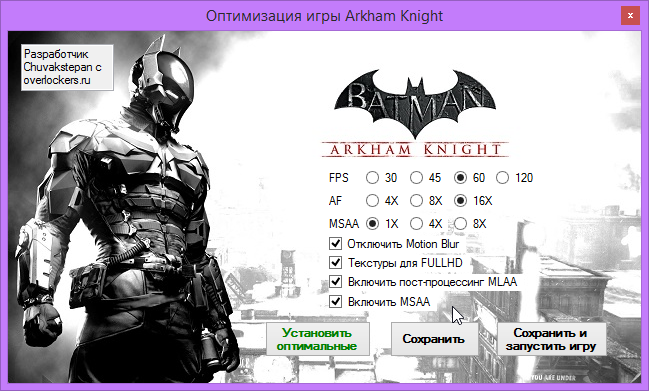 Утилита для оптимизации графических настроек от Chuvakstepan (Внимание! Не работает на последних версиях игры из Steam!)