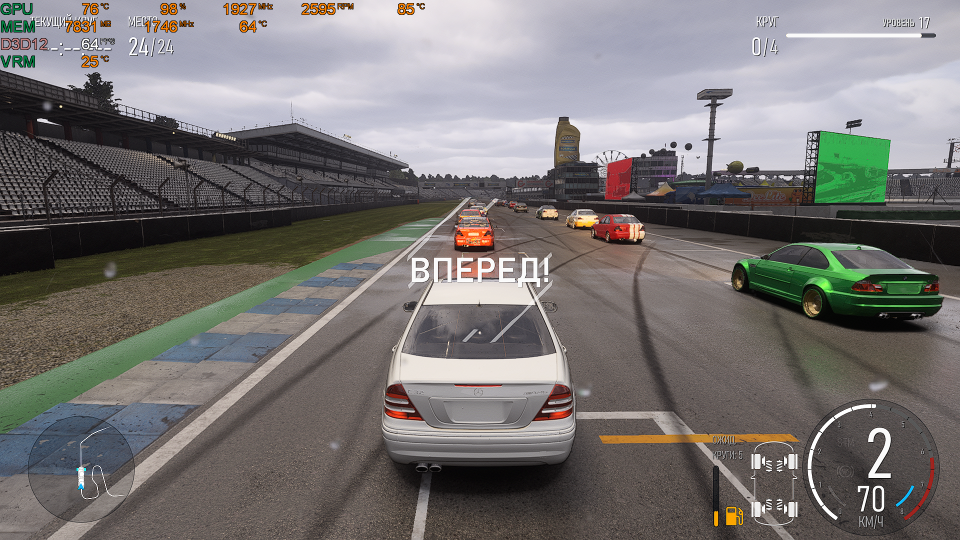 Добавлено спустя 33 минуты 7 секунд: Ну вот, пошел в заезд онлайн Ф1, дождь, чума, могу еще пару сек снять с резалта ) Фпс пока и нагрузка на систему как и были. Но что понравилось, теперь при выборе тюнинга, в комментах, нет больше ошибок шрифтов, квадратиков и ноликов. Все переведено )