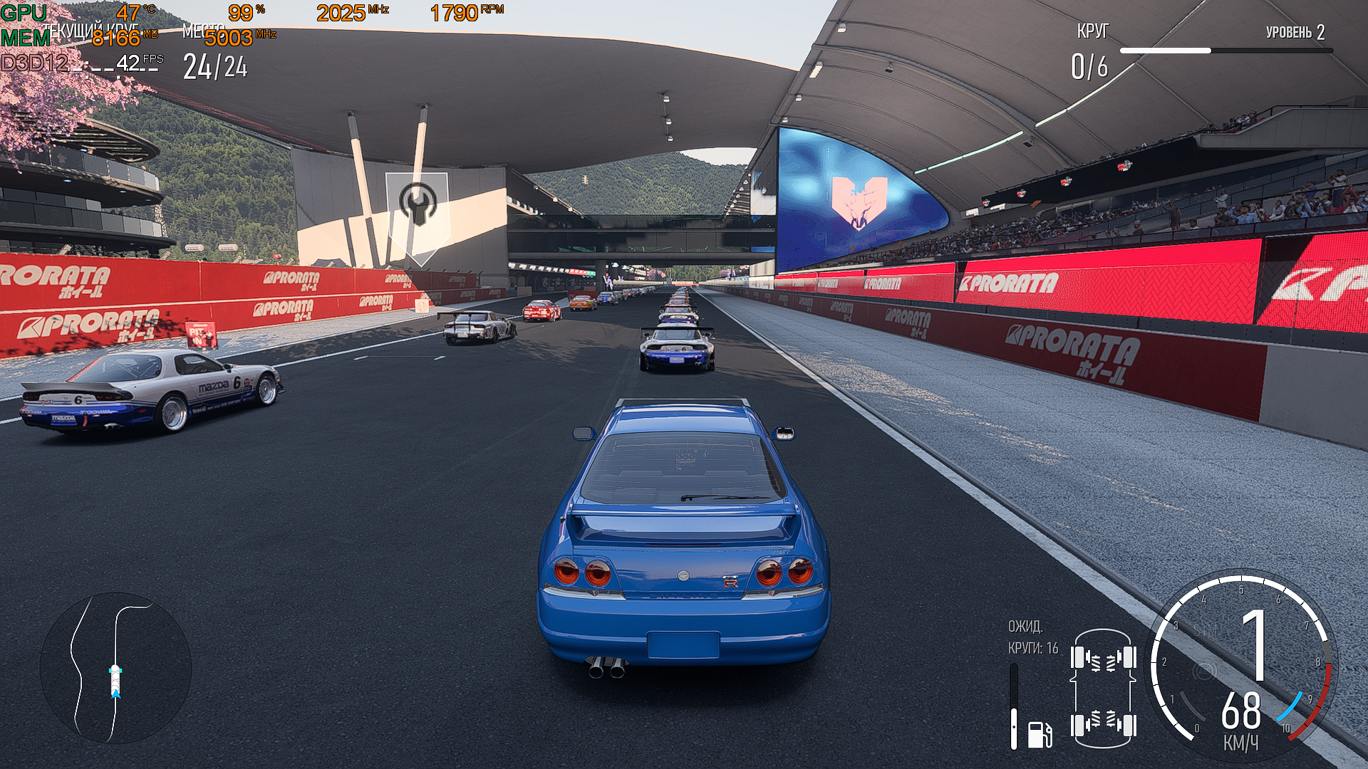 Да, и на разных трассах по разному, с производительностью. Ночь там и ливень пока смотрю также вроде особо не влияют, у меня. Касаемо памяти, по проге близко не подбирается к моему объему 12Гб, даже со всеми макс лучами, в нативе. Так что странно все это.