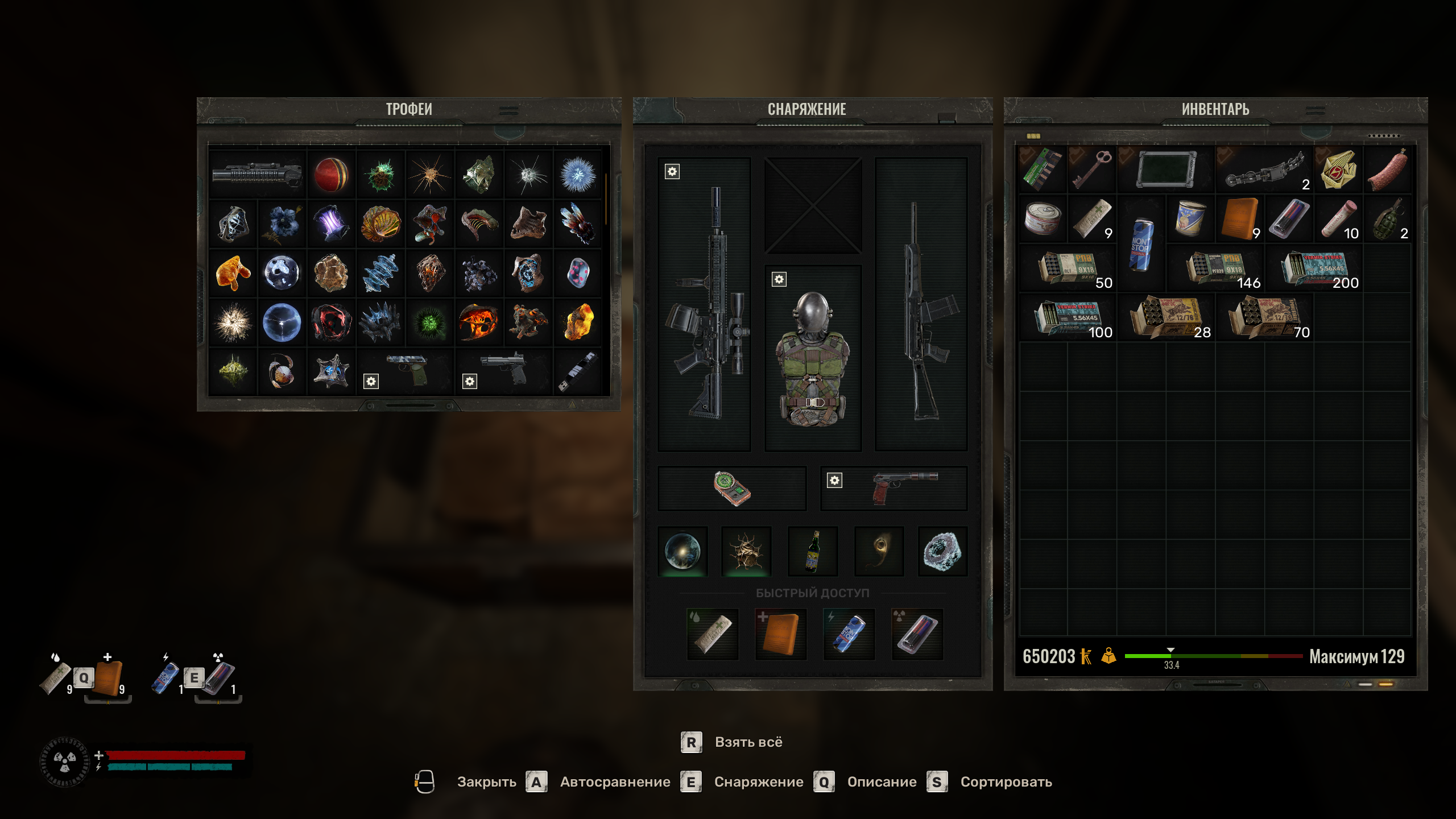 Это не старфилд, где можно оптом таскать продавать. Здесь же Скуф - доходяга, который перегружается от патронов с аптечками. Я помимо своих 4 стволов могу взять 3, максимум 4 автомата, чтоб он совсем не пешком ходил. Это с 3 артфактами на вес. И то уже в последнее время бросил это дело, заколебался по 1,5км пешком вразвалочку на энергетиках нести 4 автомата по 3к. Подбираю только патроны. Бутылку не находил. 2шт слабых на вес, один средний.