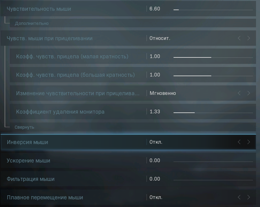 Нужна помощь, нигде не нашел. Какие настройки сделать, чтобы при прицеливании и без , была одна сенса? У меня стоит значение 1 в доп. настройках везде, но при прицеливании медленнее становится все равно.