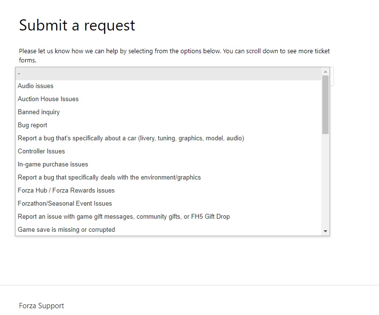 Не знаю почему такое может происходить, но сейчас заглянул на страницу FH5 Known Issues (Известные проблемы FH5), а там уже 141 проблема перечислена. По вашей проблеме упоминаний не нашел. Страшное то, что четыре дня назад было 127. Попробуйте написать в обратную связь по игре, может разработчики тикет и на вашу проблему заведут. https://support.forzamotorsport.net/hc/ ... quests/new - вот здесь. Сначала необходимо зарегистрироваться на сайте. Потом будет доступна форма отправки.