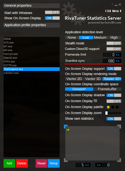 LuisAlberto использую настройку в драйверах Нвидии: вертикальный синхроимпульс - адаптивный. Когда фпс выше 60 - работает обычная вертикальная синхронизация, когда фпс падает ниже - отключается вообще, чтобы не было инпут-лага.