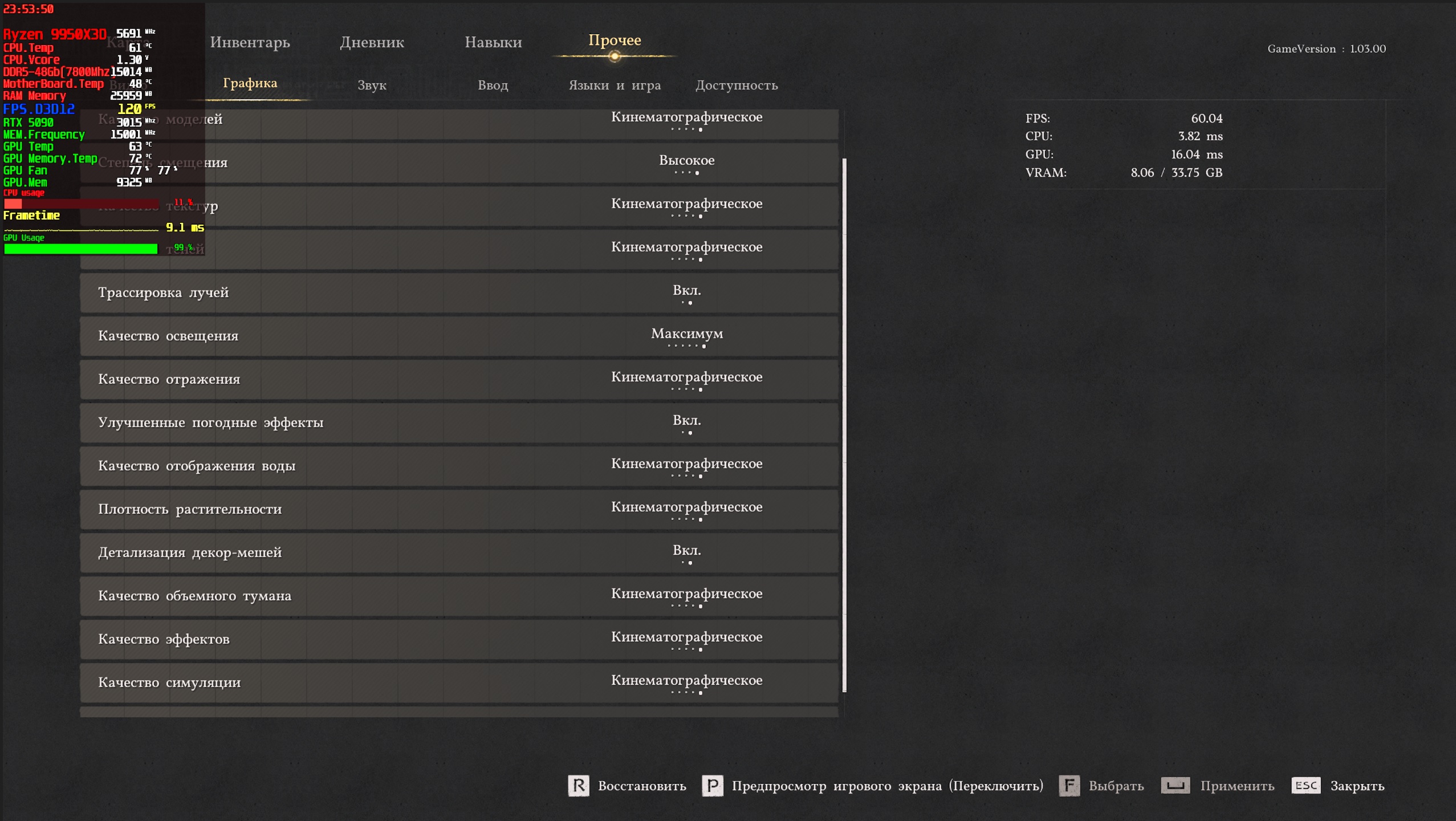 GerrLord347 У тебя что-то не так настроено в мониторинге. Или какая-то прога с генерацией включена. Не может твоя 5090 быть вдвое быстрее других 5090. Сама игра в меню показывает фпс меньше, чем мониторинг. Не хочется думать, что ты нарочно подкрутил коэффициенты в программе мониторинга, чтобы нас тут дебилами выставлять.
