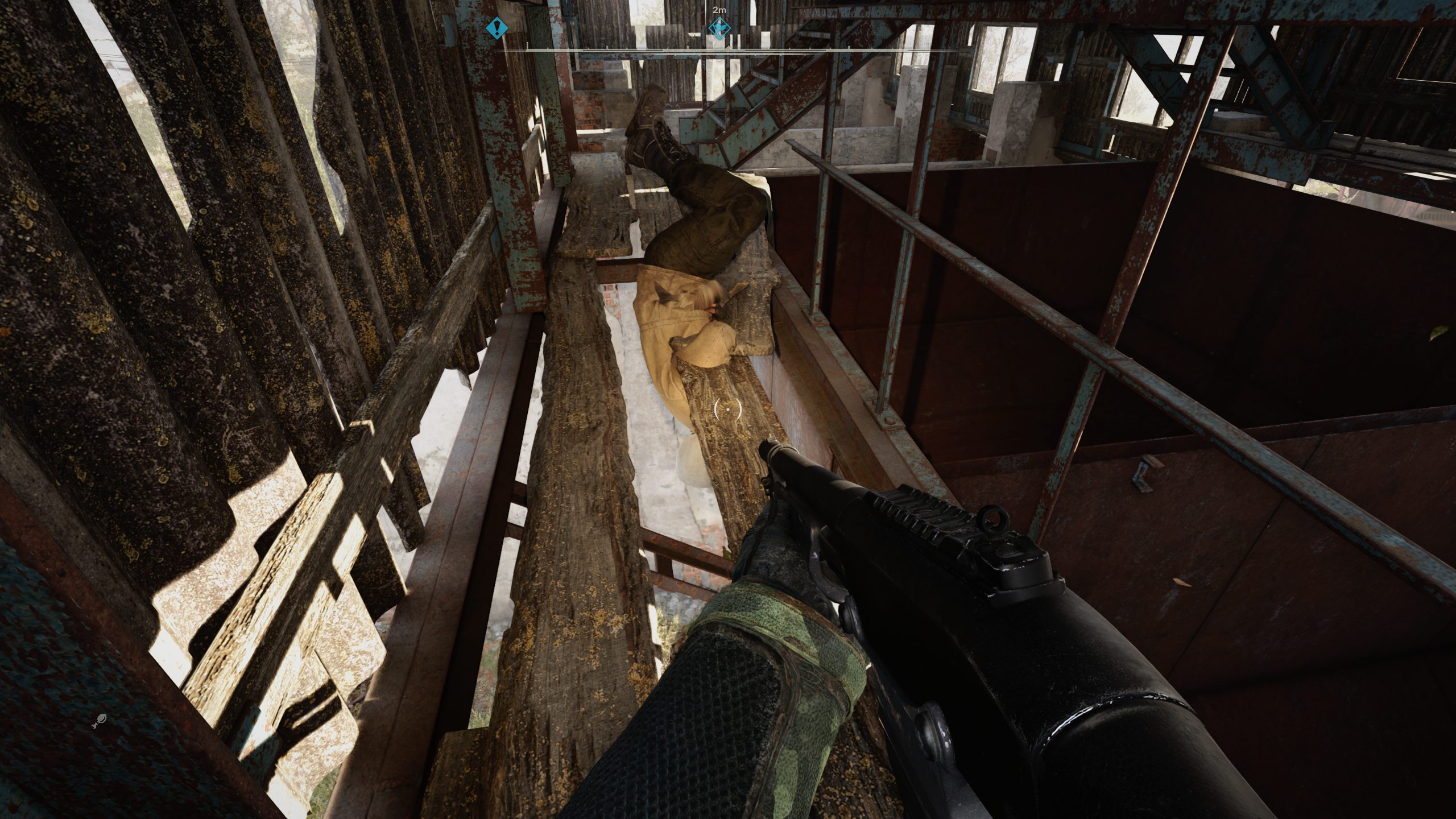 и еще бесит, в подтверждение что у НПС нет препятствий, а есть цель. тогда как у игрока есть и цель и препятствие..... чел стоит за оградой из сетки, весь рожок как в пустоту, непробиваемая она, сетка...... и очередные мародеры, чтоб их! не успел спуститься за хабаром..........