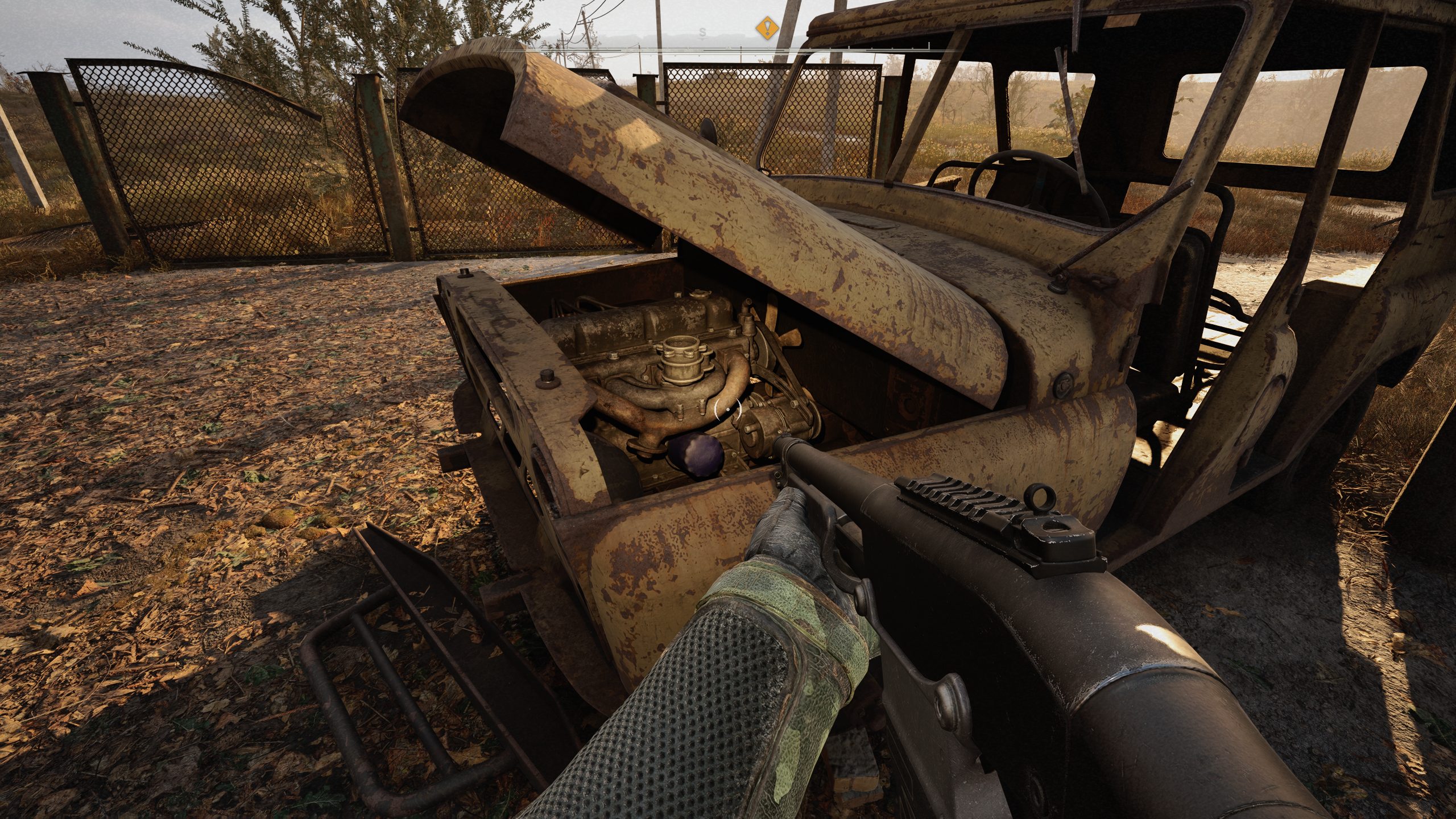 Заметил что на оружии исчезло "Пробитие" и появилось "Удобство", но судя по иконке это всё то же "Пробитие". При телепорте (с помощью проводника) с Ростка на Химзавод - на выходе в воздухе висели предметы. По пути на военные склады (бывшая база военных) увидел ЗиЛ МСОПа с трупиками. Глянул на окна двери, а они в воздухе висят (дверка водительская приоткрыта, но они отдельно как если бы дверь была закрыта). На самой базе меня душевно встретили 3 кровососа, после их ликвидации и осмотра базы появились ещё, потом несколько раз приходили сталкеры (то военных, то Корпус), а к ним откуда-то с округи набежали ещё кровососы и ещё сталкеры (корпус)... Опасное место.