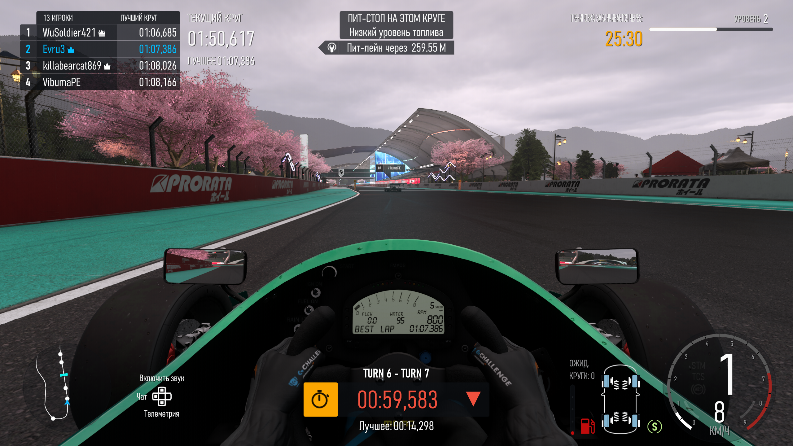 Теперь на скрине, неск гонок подряд таких, что уже бесит. Квалу прохожу нормально, причем сейчас стал смотреть каким тюнингом лидер пользуется, если не бот, у нескольких уже подглядел себе такие же тюнинги поставил. Так потом в гонке снова поджимают, бортуют, в итоге я выхожу шире и снова получаю как за срезку дебильный штраф. Ну это фигня конечно полнейшая, убивающая весь интерес. Штрафы наказания нужно им перерабатывать.