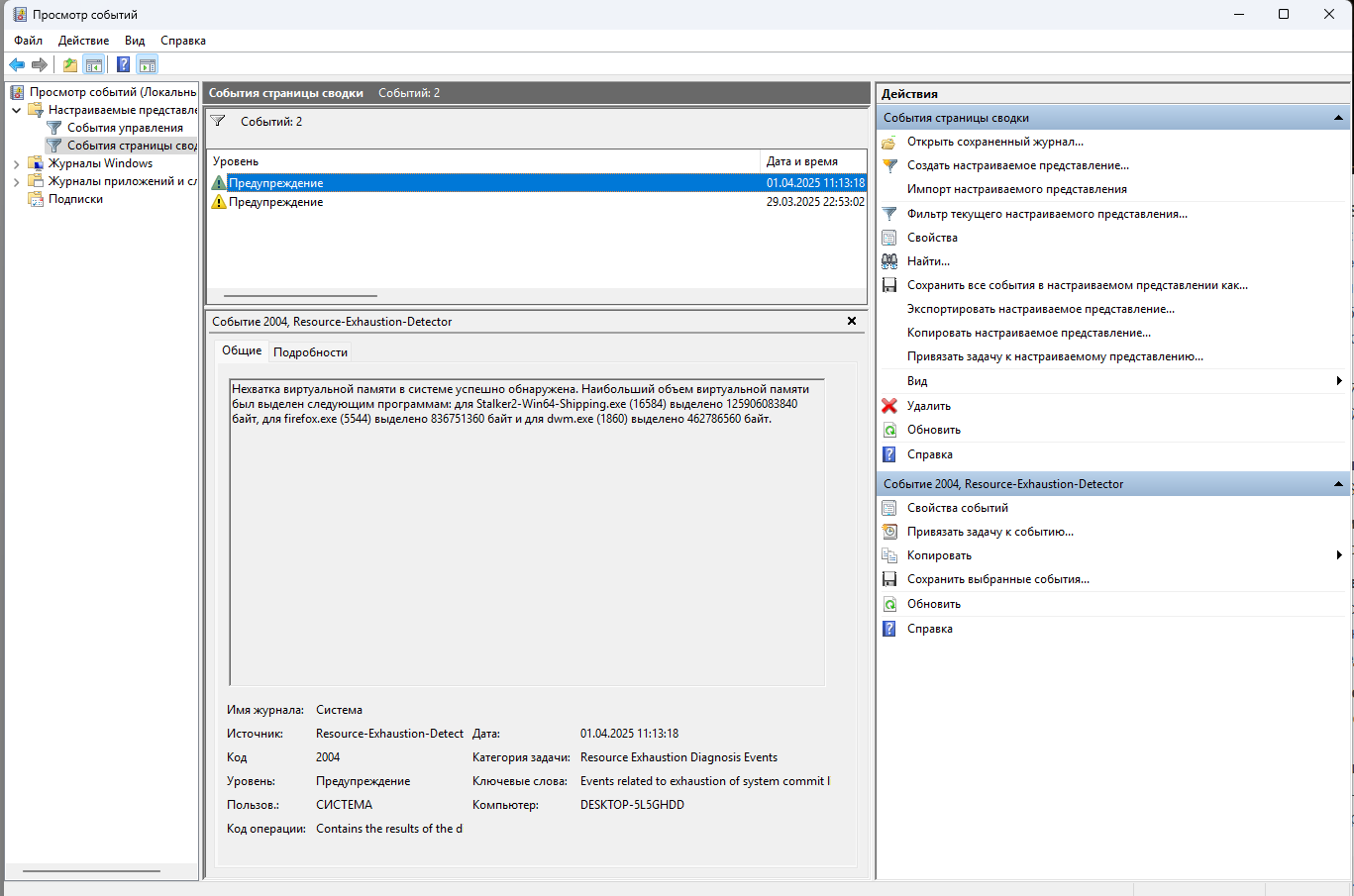 А прочитать сообщение системы, не?) Там же написано, что система выделила большее количество свопа 2 процессам. Это реально с откл файлом подкачки? есессно, вкл, автоматический выбор на усмотрение системы.