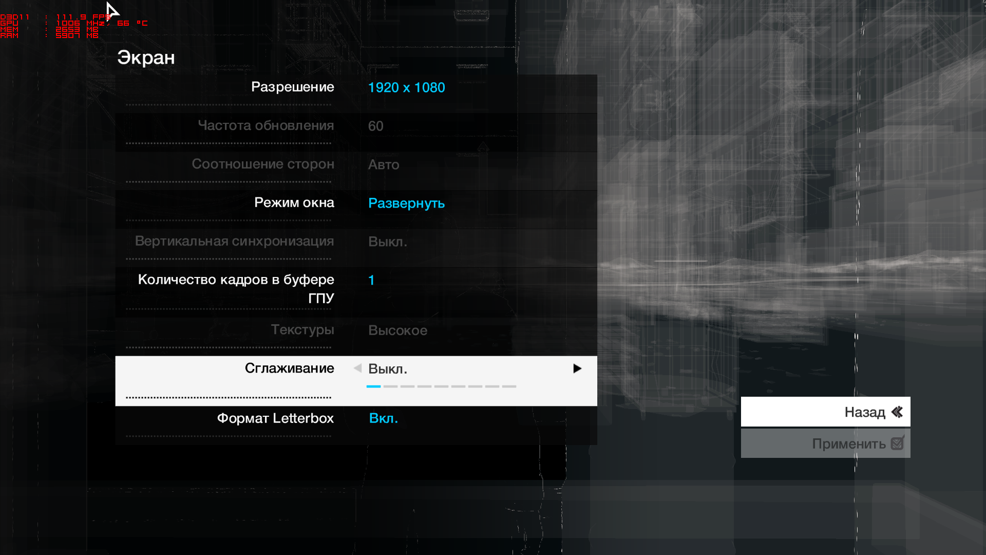 HDR: Отключает или включает высокодинамическое освещене. Не рекомендуется выключать, иначе игра глючит.