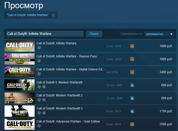 — Legacy Edition включает в себя Infinite Warfare и MW1R. Цена 79.99 $; — Digital Deluxe Edition включает в себя сезонный пропуск и саму #CODIW, а также ремастер MW1,. Цена 99.99 $; — Legacy Pro Edition включает в себя сезонный пропуск Infinite Warfare и саму игру, MW1R, также в издании присутствует стиллбук, саундтрек и пара эксклюзивных плюшек, которые будут раскрыты позже. Цена этого издания составит 119.99 $.