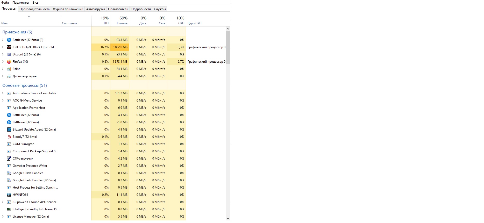 Это тоже делал, как и много другое (установку с нуля, обновление дров, отключение всего что есть в автозагрузке и службах, и т.п.). Единственное что еще в принципе можно попробовать - взять чистый ссд и накатить на него только чистую винду и колду. Но честно лень очередной раз 150+ GB выкачивать.