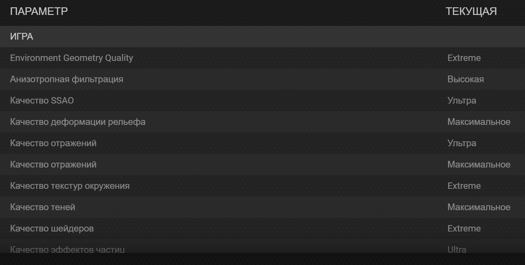 да ты прав каким то макаром отражение и качество текстур машины,при ультра и экстрим,сьедает сильно ФПС,при этом он не перегружает игру,выдать именно эти функции и накушаются с текстурной выделе ной памяти