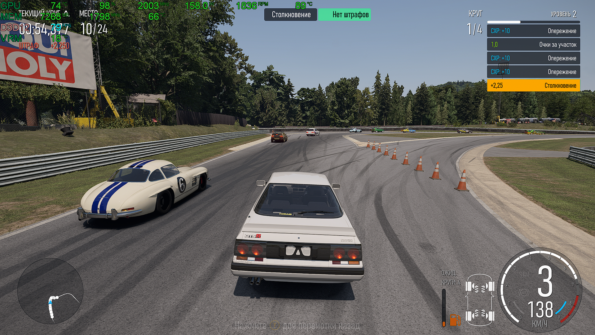 Всем привет! На максимальных настройках графики плюс 150% разрешения 75-90 фпс на профильной системе. Езжу только карьеру, онлайн не интересен, все помощники отключены, кроме АБС, Руль Logitech g27, механика со сцеплением. Приятное ощущение сносов передней оси в поворотах в этой игре, вибрация похожа на assetto corsa. Наконец-то починили переключение передач, больше не долбится в отсечку).