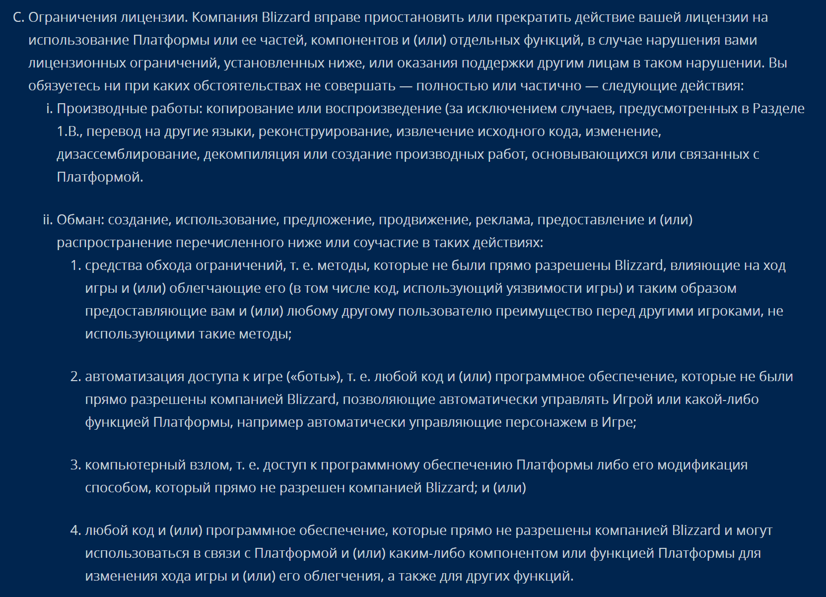 Упоминаний о недопустимости использования стороннего софта для получения преимущества перед другими игроками никогда не встречал в лиц.соглашении, грамотей?