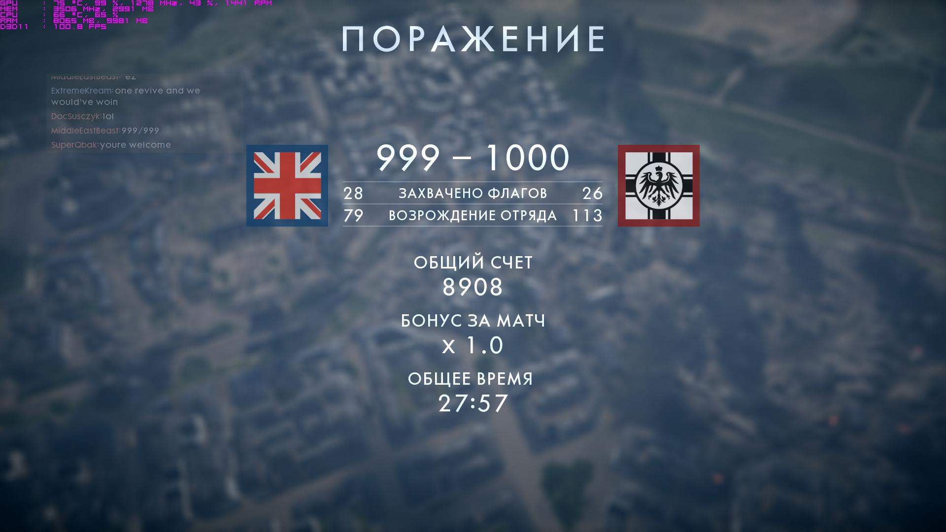 Вчера только толком (можно сказать с удовольствием ) играть начал, до этого не нравилось в мульт играть. В панели управления NVIDIA выставил - вертикальный синхроимпульс: быстро, в игре ульра+150%→почти 100 FPS, и при этом нет разрывов картинки и нет дрожания картинки, как с позапрошлыми драйверами и теми, что ещё раньше вышли (замечательные крайние драйвера 375.70 WHQL и прошлые 375.63 WHQL). Весь день вчера играл в разные режимы (с перерывами на обед, кофе, ужин ), сыграл матчей 50-55, с разными людьми - практически все победы (только раз или два команда проиграла). Рашил, захватывал флаги, голубей. Минировал..., и всегда в плюсе по убийствам был (хоть с небольшим: 8-12-15 иногда 20-30).