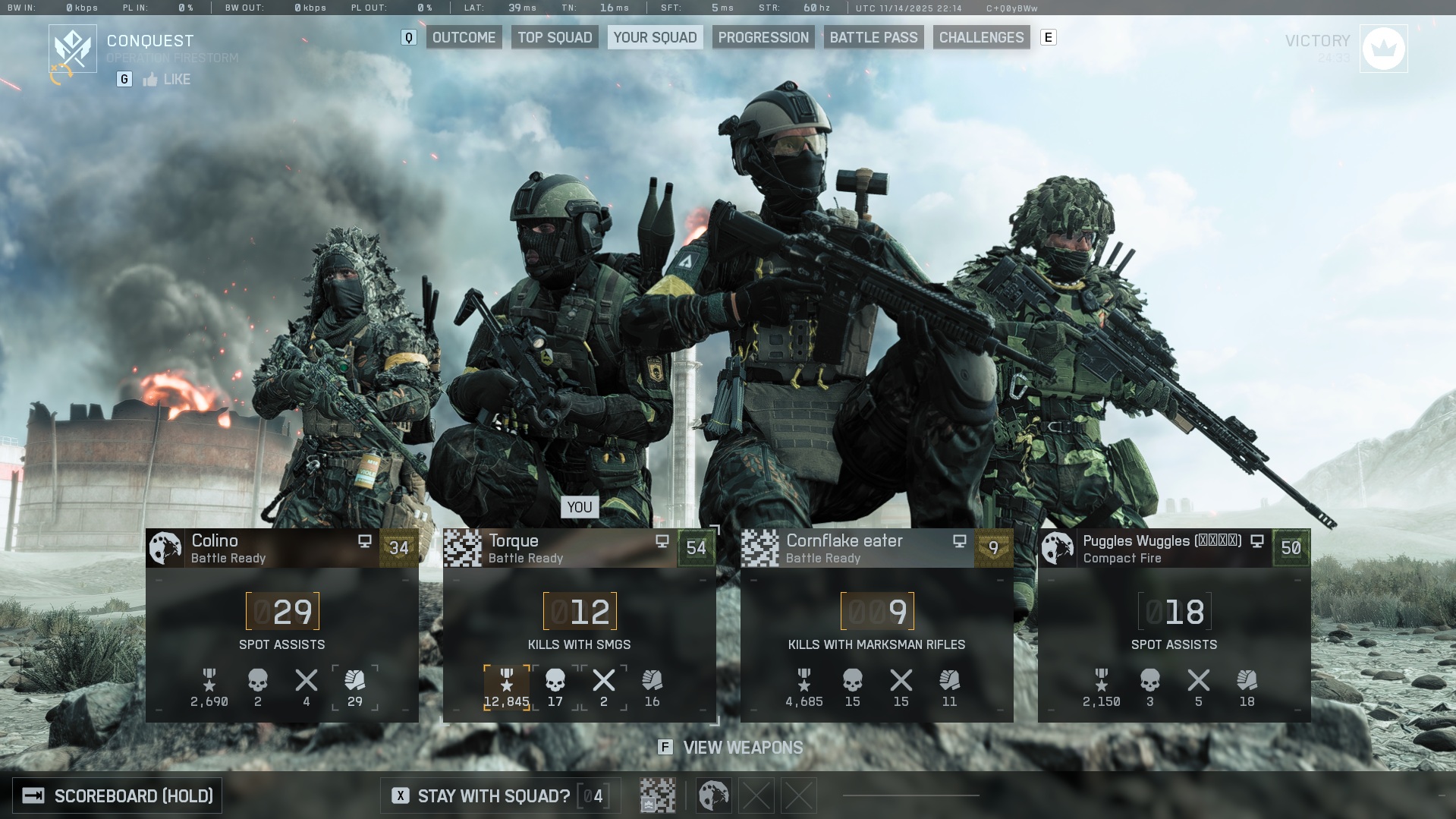 Тайные операции (28 октября 2025) • Новая карта: Блэкуэльские поля. Все типы техники • Новый режим: Ударная точка. Интенсивный режим 4на4 с захватом точки, отряд против отряда - в каждом раунде у каждого члена отряда есть лишь одна жизнь • Транспортный БТР «Марк 2» - техника для поддержки пехоты с водителем и 3 ганнерами • Карабин "SOR-300C" - низкая скорострельность и высокий урон с аммуницией .300 Blackout • Снайперка "Мини Фикс" - снайперка а-ля Scout Elite, легкая, предназначенная для агрессивных разведчиков • Пистолет" GGH-22" - большой магазин и темп стрельбы сочетаются с низким уроном, а предназначение - спастись, когда закончилась обойма основного оружия • Накладка на планку и LPVO (прицел с переменной кратностью): первые обвесы на винтовки и пулеметы, призывающие пересмотреть распределение лимита обвесов