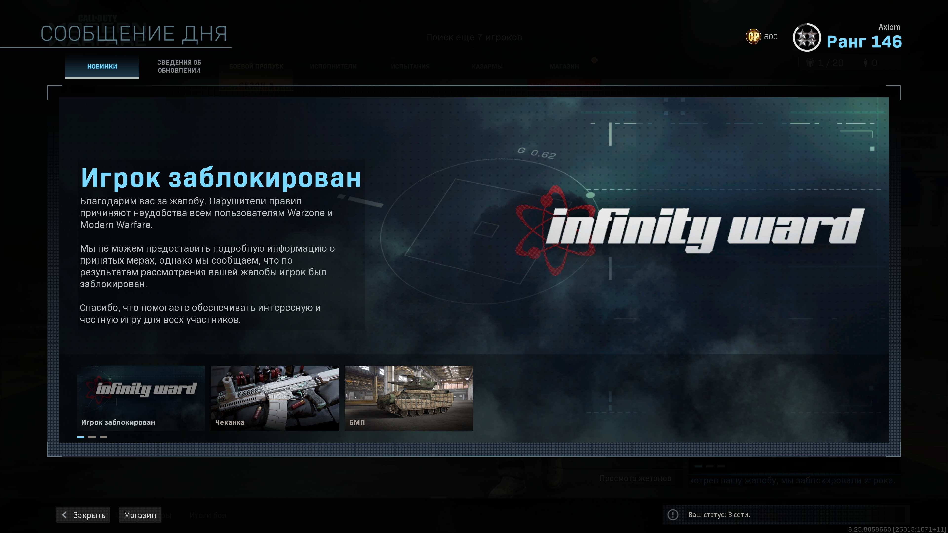 ОШИБКА 6065. Проблема этой ошибки в том, что игра почему-то не распознает новые драйвера от AMD и NVIDIА. Вы, конечно, можете, как я уже писал у себя в паблике, обновить DirectX, сделать сканирование игры на битые файлы и попробовать сыграть на минимальных настройках с ограничением 300 кадров, но это помогает не всем. Попробуйте откатить свои драйвера видеокарты к более старой версии. Проблема должна решиться. Что бы удалить полностью графические драйвера используйте DDU ( https://www.guru3d.com/files-details/display-driver-u.. ). ОШИБКА 6071. Это еще одна распространенная ошибка игроков. Одна из причин этой ошибки в том, что система игры не хочет воспринимать вашу разогнанную карту. Разгоняли ее вы, или кто-то в магазине вместо вас — настоятельно рекомендую зайти в настройки видеокарты и вернуть ей дефолтную, тактовую частоту. Проблема тоже должна решиться. ОШИБКА 6068. Это ошибка непосредственно DirectX. . Можно еще попробовать заблокировать COD MW на 30 фпс. Чтобы это сделать, зайдите в Панель Управления > Nvidia / AMD > управление 3D настройками > настройки программы. Дальше выберете игру из списка и установите вертикальную синхронизацию *AdaptiveHalf Refresh Rate*. Примените изменения, затем запустите игру и отключите вертикальную синхронизацию в игре и вуаля. Игра будет заблокирована на 30 кадров в секунду. Это позволит уменьшить использование графического процесса, что приведет к стабильной производительности. Ещё с ошибкой DirectX может помочь установка видеодрайвера Studio Driver (работает для карта Nvidia). СБОЙ ПРИ ЗАПУСКЕ. А вот и самое вкусное, когда у вас игра либо не запускается, либо крашится без какой-либо ошибки. Одной из причин таких приколов может быть ваш антивирус или Защитник Windows, который обнаруживает exe-файл и кидает ему бан, как трояну. ОТКЛЮЧИТЕ АНТИВИРУС или сделайте исключения для COD MW в самом антивирусе. Если данный способ не работает, то виновником торжества может быть программное обеспечение для мониторинга системы, как например MSI Afterburner или GeFrorce Experience. Отключите их, игра должна работать нормально. НООО, есть небольшая поправочка. Если вы отключили MSI Afterburner — это не решит проблему, нужно сделать вот что: Откройте сервер статистики RicaTuner (RTSS) > Нажмите кнопку «добавить» и перейдите в папку игры > Добавьте игру COD MW в разделе «свойства профиля приложения» > Установите для игрового приложения уровень обнаружения 0 и можете закрывать RivaTuner. 100 процентная загрузка процессора. Чтобы это исправить, перейдите в раздел *C:\User\ВашеИмяПК\документы\CODMW\players*. Идем дальше. Здесь вам нужно отредактировать два файла, а именно config.cfg и config-C7XXXXXX.cfg. Откройте эти файлы и найдите *setcl 895653276*. Теперь убедитесь, что разрешение перед этой стройкой совпадает с разрешением экрана вашего монитора. Если установлено высокое разрешение, измените его на собственное разрешение монитора. Сохраните его и запустите игру и 100 процентная загрузка ЦП будет решена. НОООО, если установленное разрешение совпадает с вашим собственным разрешением, то вы можете попробовать заблокировать игру на 30 кадров в секунду, как мы делали это в 3 пункте. З.Ы. такого рода исправление помогает так же ошибках: 6071, cбой при загрузке, сбой при игре и пр. Ошибка 6036 и 6146. Ошибка лечится очень просто. Перейти в файлы игры, найти *bink2w64* и удалить его. Потом, перейдите в папку *Main* и удалите *fileSysCheck.cfg*. Потом откройте Battle.Net и нажмите на игре в свойствах *сканирован