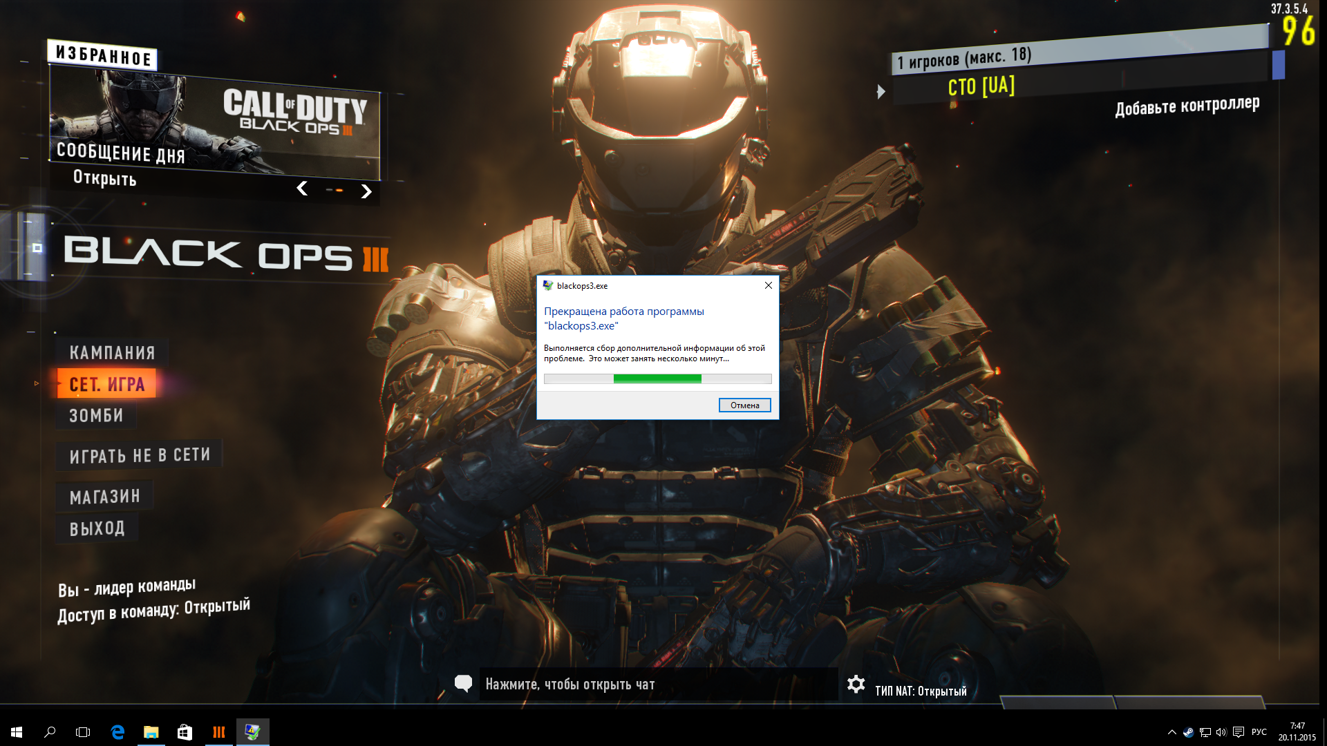 Said6713 Не все так шикарно. С утра загрузилось еще 29,5 мв версия 37.3.5.4 который добавил ложку дегтя (загрузку текстур в начале раунда с просадкой FPS до 40, раньше такого не замечал и конечно привет от разрабов "вылет с игры".)