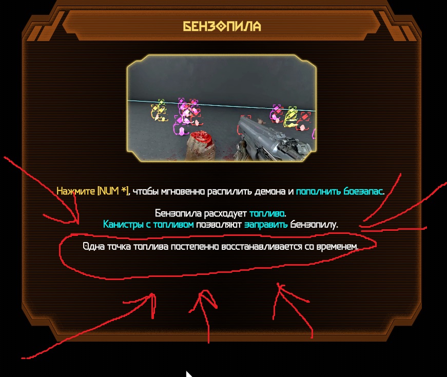 Дум 2020 - ну прям пример гениальной игры, ага. Моя претензия не к тому, что тут есть какие-то сложности. А в том, что тут есть совершенно лишние бредовые изменения в худшую сторону, которые плохо или никак не объяснены. И да, любая хорошая игра просто обязана объяснять свои механики игроку. Я не говорю про подсказки, как попасть в секреты (хотя они то как раз тут предельно простые) или четкие пошаговые инструкции по прохождению. Но раз взялись делать бестиарий (в котором есть хинты), то хотя бы пометку "этот пилится пилой за x канистр" добавить извольте.