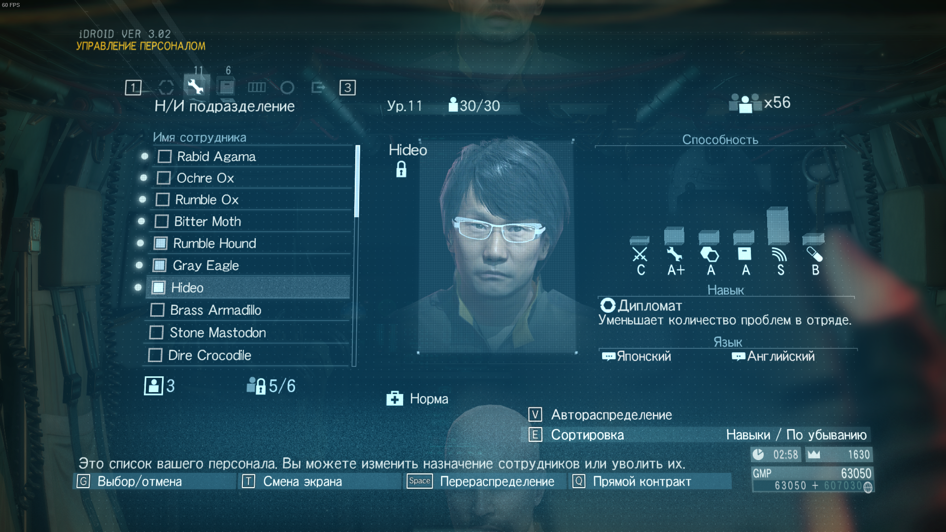 7. В итоге Оцелот говорит, что необходимо найти какого-то еще человека, знающего русский. После завершения первой миссии в Афгане вижу у себя в доступных 3 новых дополнительных миссии и вот в одной из них подписано, что в этой миссии можно эвакуировать человека, знающего русский, и типа, у меня будет тогда переводчик. Не сомневаюсь, что так и будет и игра проведёт заботливо советами по всему процессу назначения. Но, погодите, у меня УЖЕ среди персонала есть со знанием русского! Даже несколько. Как им сказать, чтоб переводили.