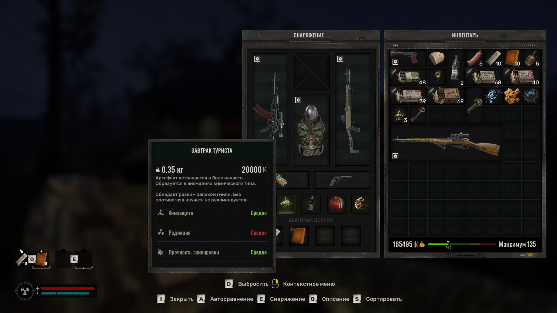 kolyan-x3 Вчера не повезло, сходил в ядовитую дыру и отстойник химикатов, выпали завтрак туриста и ещё какая то шляпа, пошёл второй раз после выброса, вообще пусто, странно - раньше аномалии респались после выброса, придется ловить