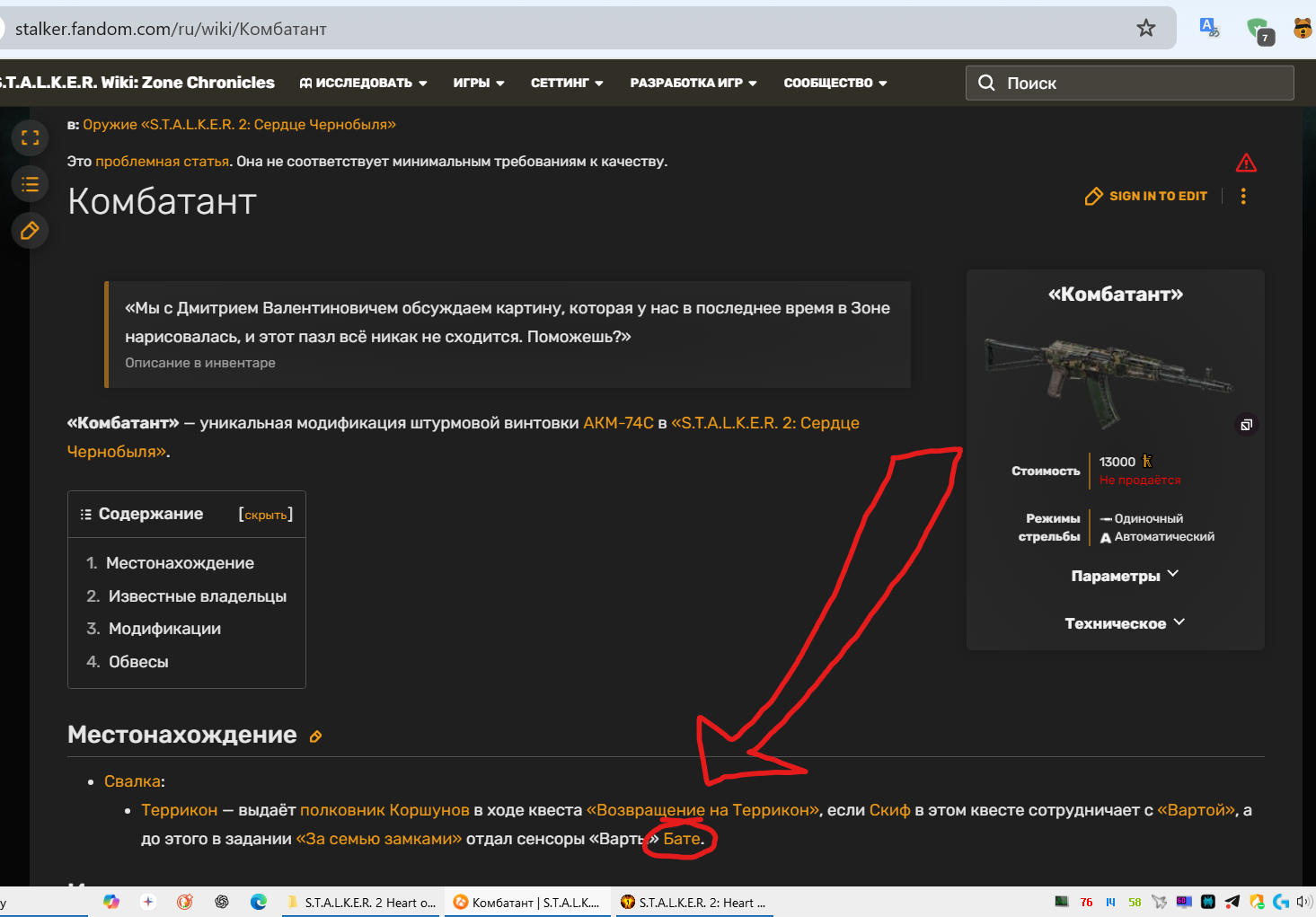 bibukov А я чо виноват ,что они патчили постоянно и я из-за этого 20 раз игру заново начинал ,потому как новые фишки не работают на новом патче .И вообще открытый мир ,беги куда хочешь ,я и бегал везде и шарил ,я же сталкер .Я должен искать хабар ,я его и искал ,накидали везде пушек и броников ,а я выходит читер .