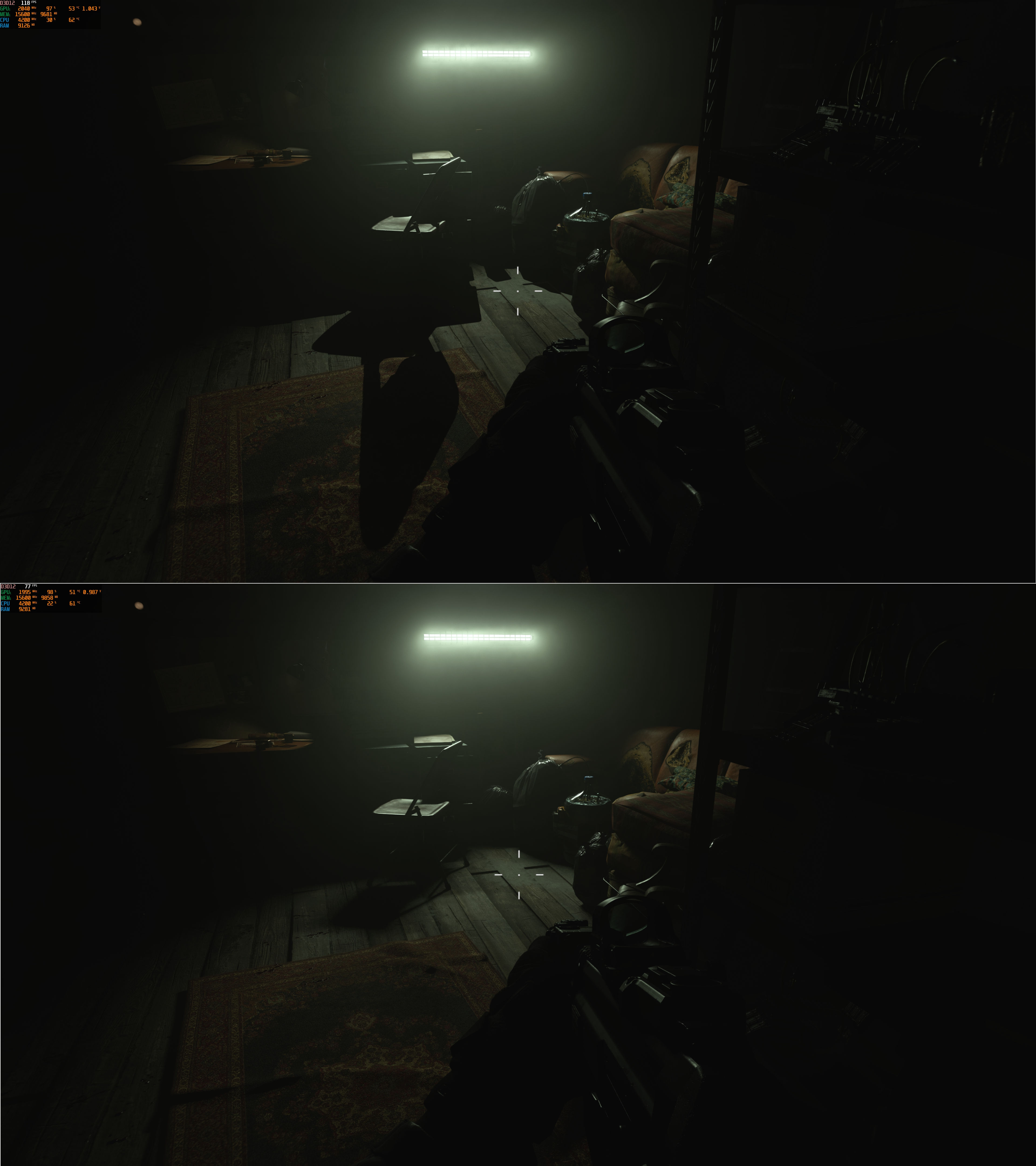 - свет идет от источника находящегося рядом - поэтому тень НИКАК не может быть меньше объекта. Если источник далеко - тогда на расстоянии стола не будет такого перепада освещения. Тень с резкими краями да выглядит достаточно топорно, но она и то более реалистична, чем та, что с ртх. Размытие тени при мягком освещении не означает, что тень должна становится меньше. Тут разработчики решили, что дифракция света сопоставима с огибанием препятствий воздухом Где тень от руки? Мягкие тени еще во времена FEAR вроде как реализовывали
