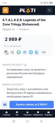 Как раз собирался переиграть старые части, хотел купить S.T.A.L.K.E.R. Legends of the Zone Trilogy-EE что бы с патчами потом не париться, так написано что это поделие вообще не запускается с Российских IP, GSC молодцы, платить ещё и за ВПН ради этого точно не буду, качну народную.